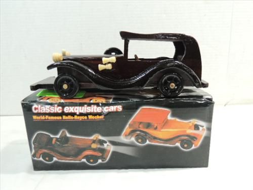 HAND CRAFTED ALL WOOD CLASSIC ROLLS-ROYCE CAR. 9.5"L. AS SHOWN. VIEW PICTURE FOR DETAIL.