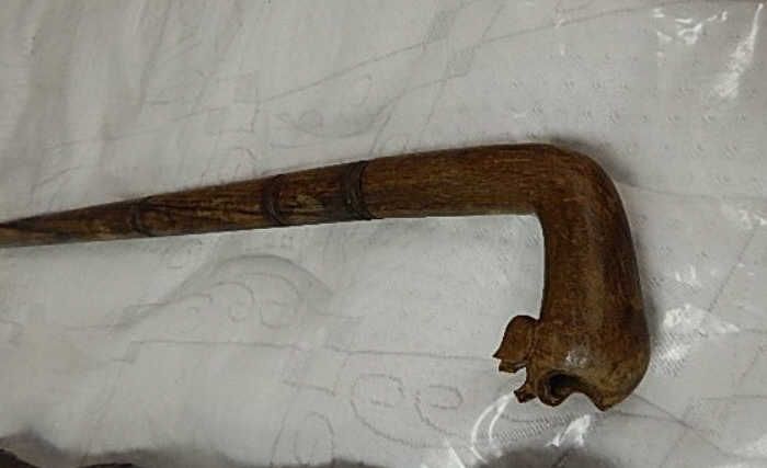 HAND CRAFTED CARVED WOOD CANE - SKULL (AS-IS)