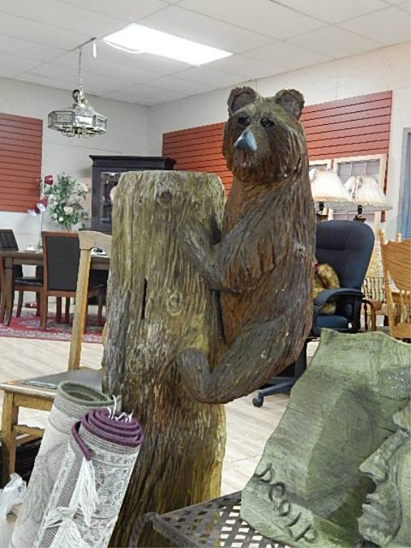 HAND CRAFTED CHAINSAW CARVING - BEAR ON STUMP