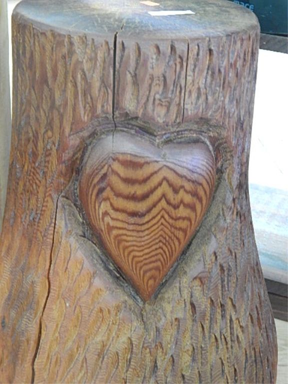 HAND CRAFTED CHAINSAW CARVING FROM OLD GROWTH STUMP - STOOL / STUMP WITH HEART