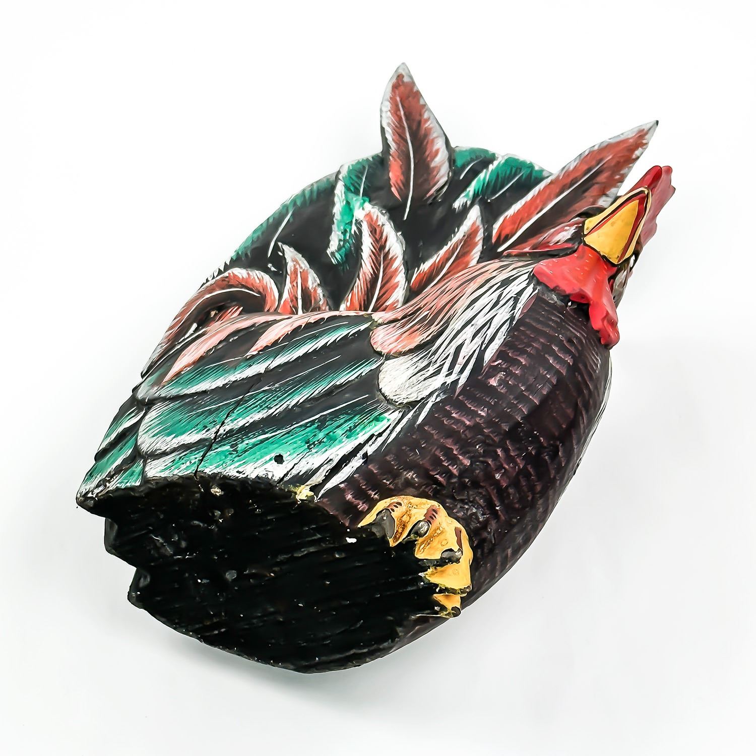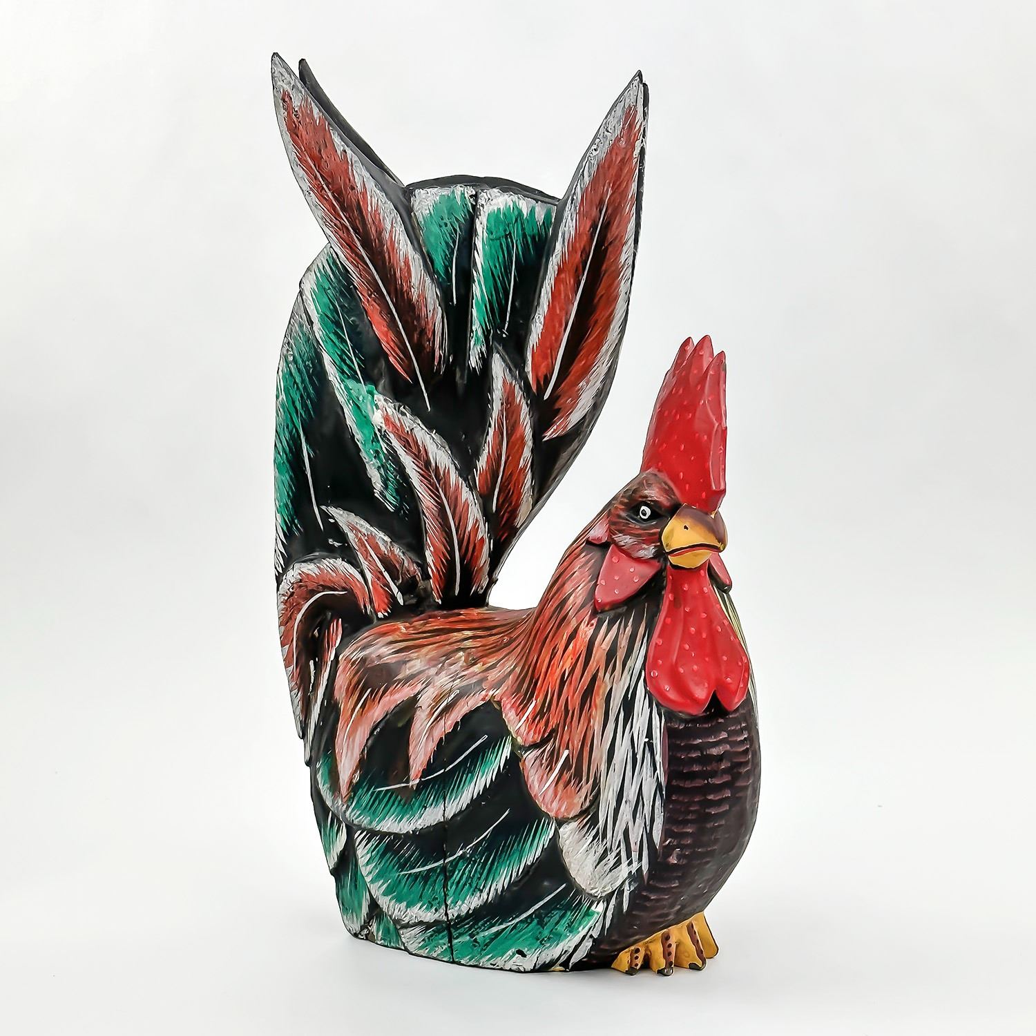 #8324 - COLORFUL HAND CARVED AND HAND PAINTED ROOSTER. MEASURES: 13.5” (34 CM) HIGH BY 7.5” (19 CM) WIDE AND 4” (10 CM) DEEP***ITEM(S) LOCATED IN LETHBRIDGE ALBERTA. FREE TRANSPORT TO EDMONTON OFFICE AVAILABLE FOR THIS AUCTION. WORLDWIDE SHIPPING IS AVAILABLE FOR ALL ITEMS