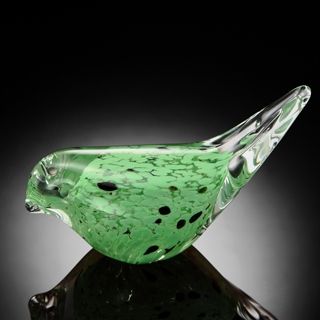 ADORABLE GREEN ART GLASS BIRD - 3"H x 5"W x 2"D - BEAUTIFULLY HAND CRAFTED