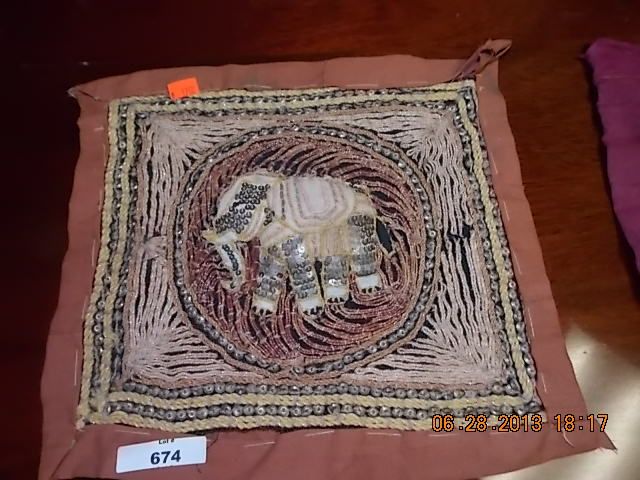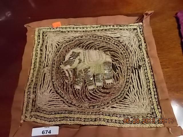 HAND CRAFTED GUILTED ELEPHANT MINI TAPESTRY - BROWN