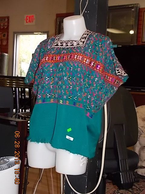 HAND CRAFTED INDIAN DESIGN SHIRT - SMALL HEAD OPENING - BOTTOM GREEN COLOR