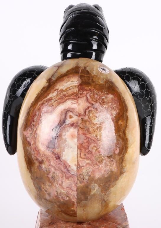 Hand-Crafted Marble stone hatching Sea Turtle statue. Made in Ecuador.