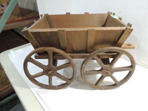 HAND CRAFTED MINI WOOD DECORATIVE 4 WHEEL CART. 22"L. AS SHOWN. VIEW PICTURE FOR DETAIL.