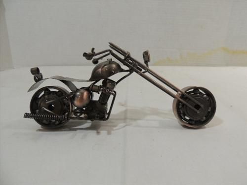 HAND CRAFTED NUTS & BOLT CHOPPER MOTORCYCLE 9"L. AS SHOWN. VIEW PICTURE FOR DETAIL.