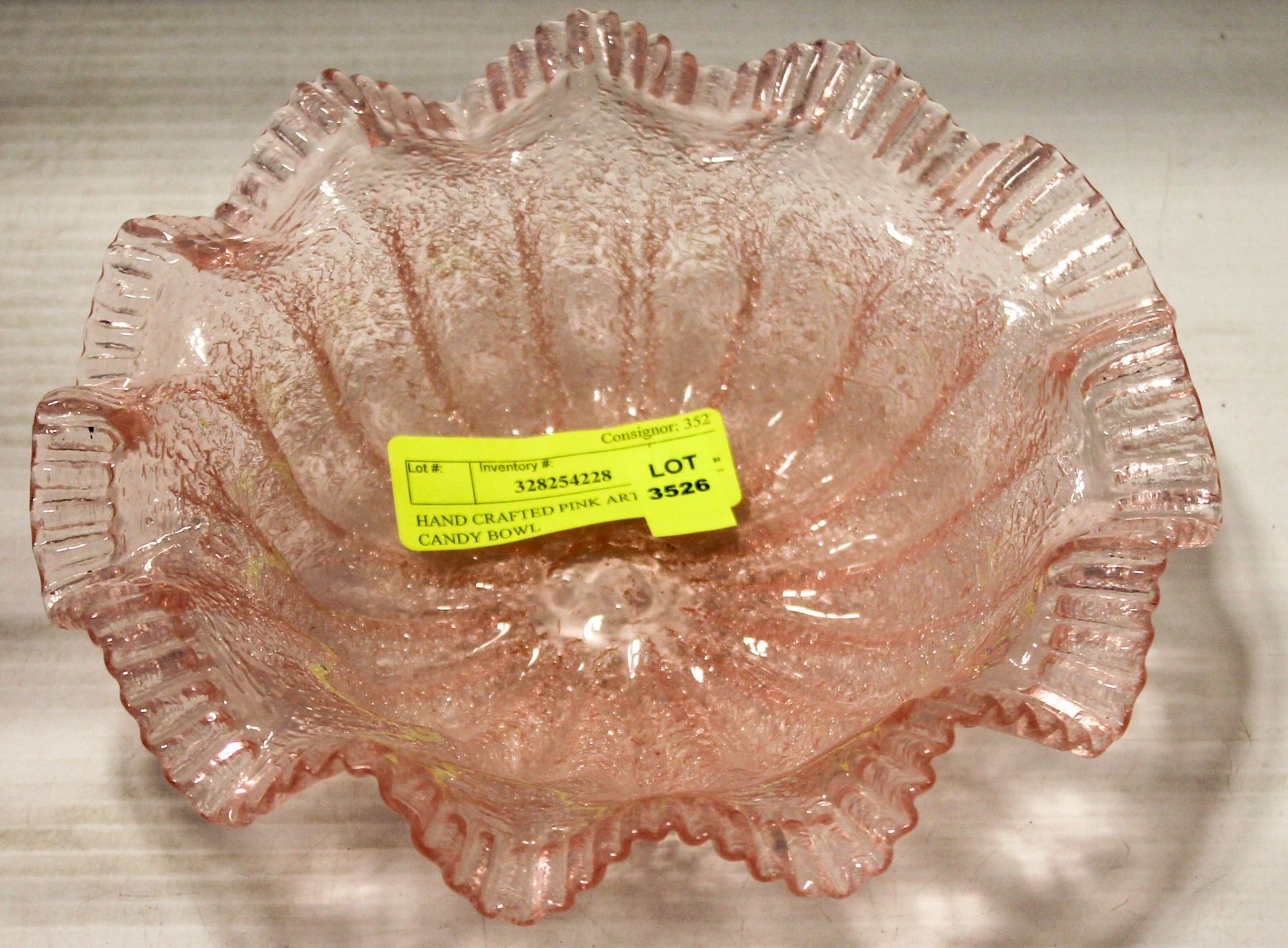 HAND CRAFTED PINK ART GLASS CANDY BOWL