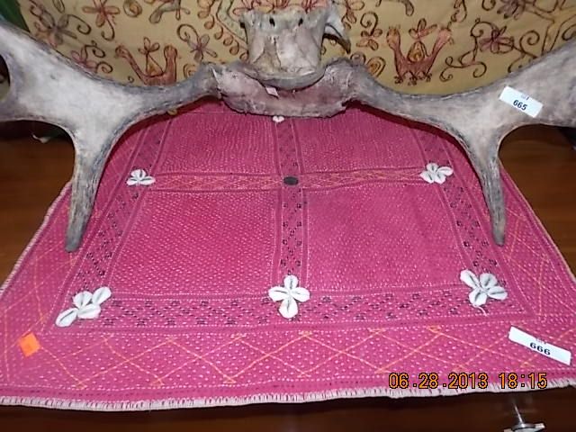 HAND CRAFTED RED TAPESTRY WITH SHELLS