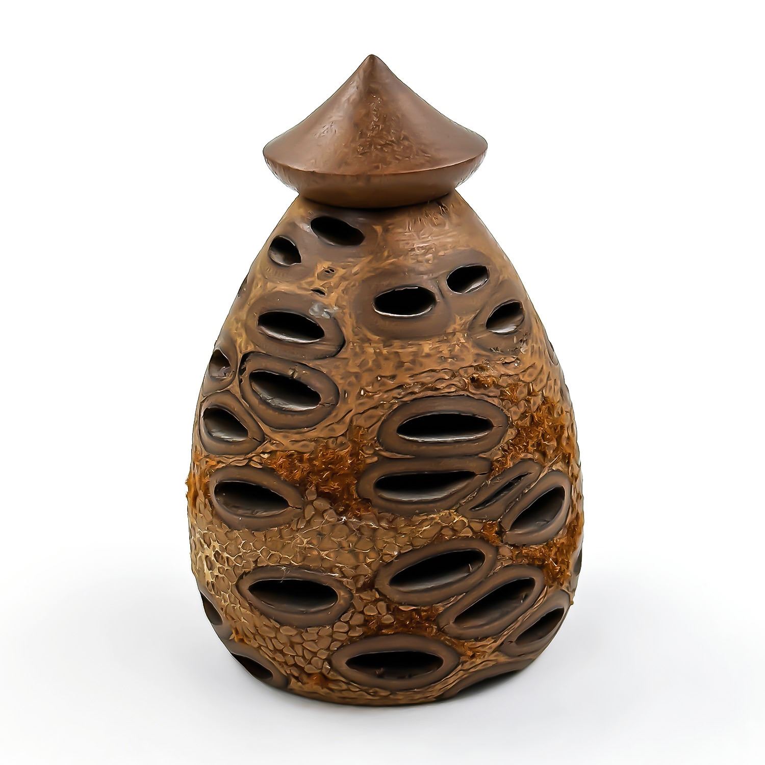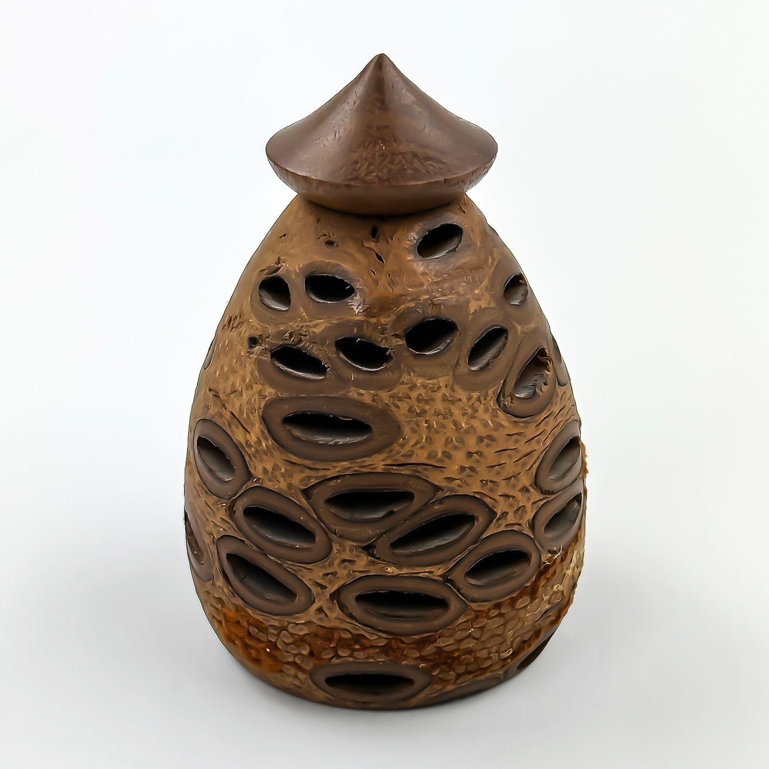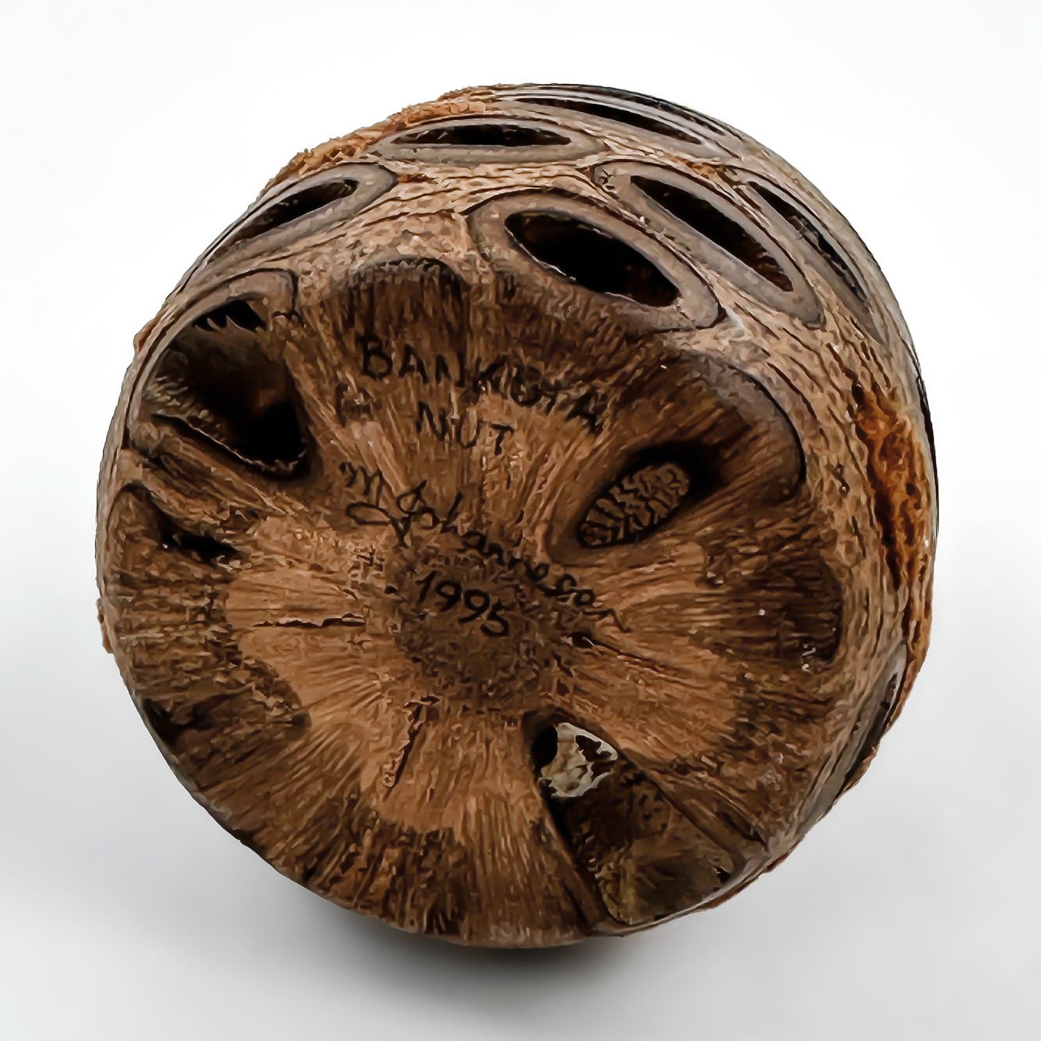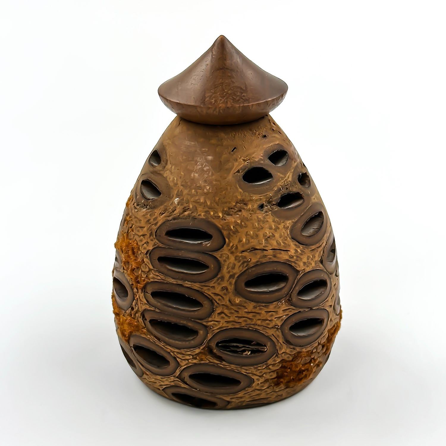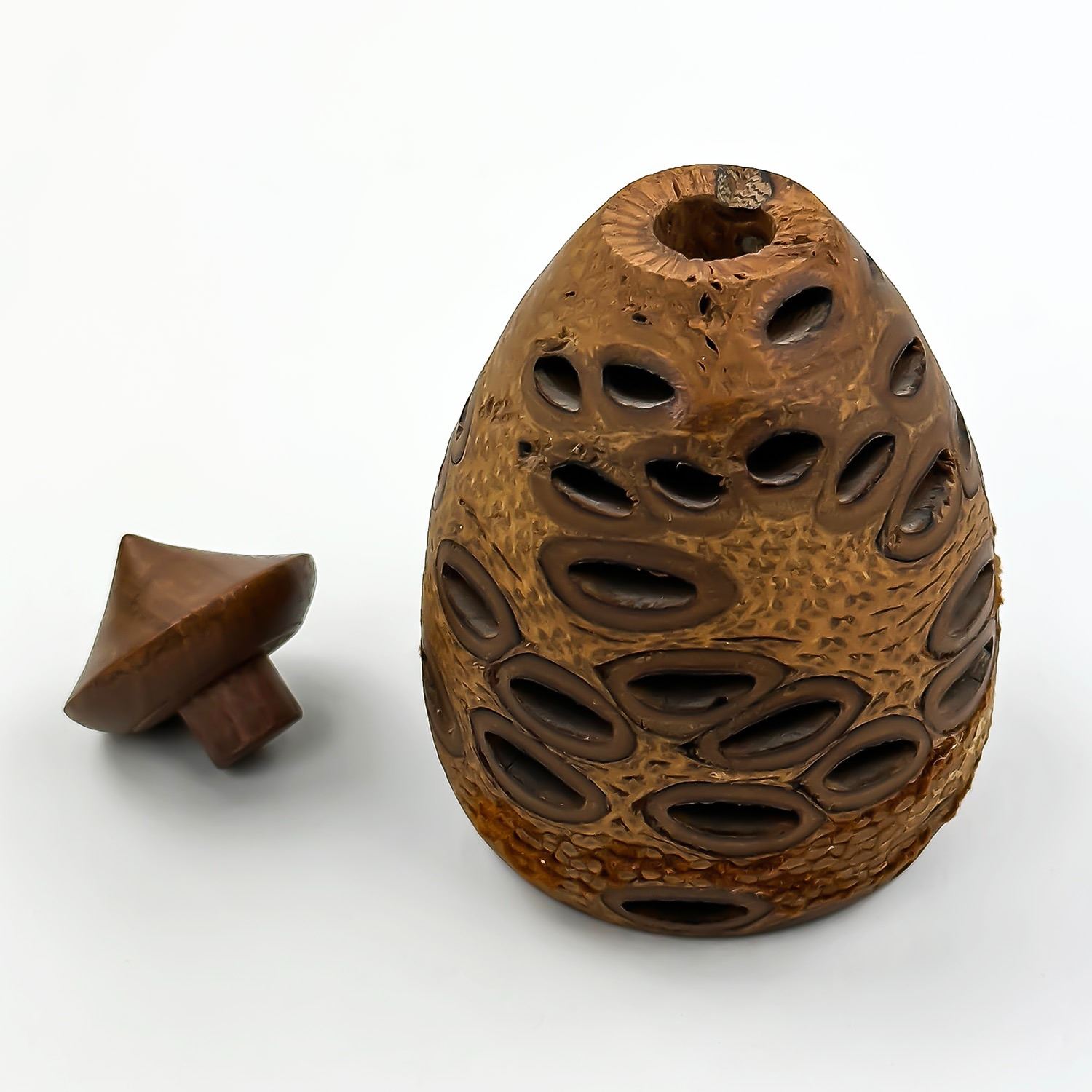 #8063 - THIS POD IS HAND CRAFTED AND SIGNED ON BOTTOM - SIGNATURE APPEARS TO READ: M. JOHANNSON OR JOHANNESON 1995. THIS POD IS CRAFTED INTO A LITTLE CONTAINER WITH A POINTED WOOD CAP. THE HOLE IS APPROX. 1/2” (1 CM) DIAMETER AND 2.5: (6.5 CM) DEEP.***ITEM(S) LOCATED IN LETHBRIDGE ALBERTA. FREE TRANSPORT TO EDMONTON OFFICE AVAILABLE FOR THIS AUCTION. WORLDWIDE SHIPPING IS AVAILABLE FOR ALL ITEMS