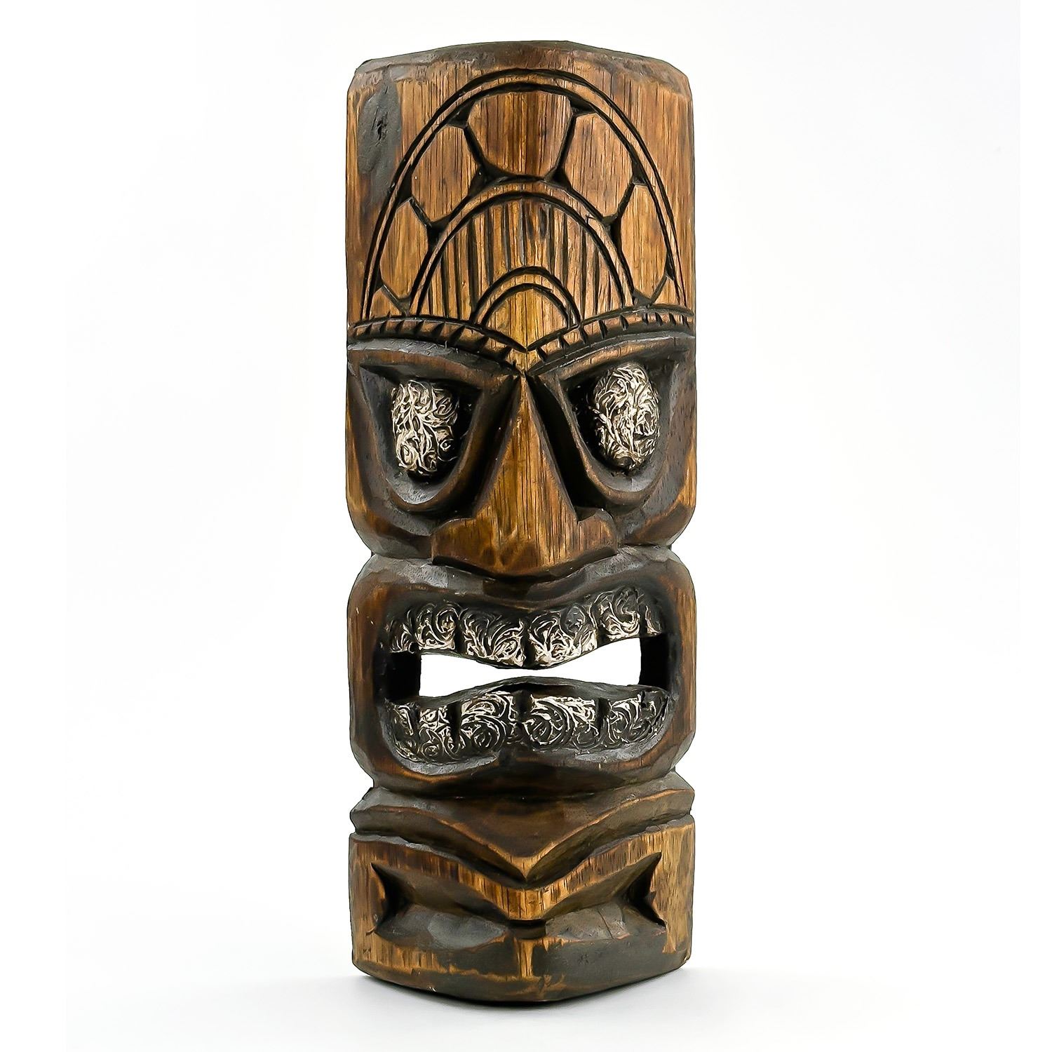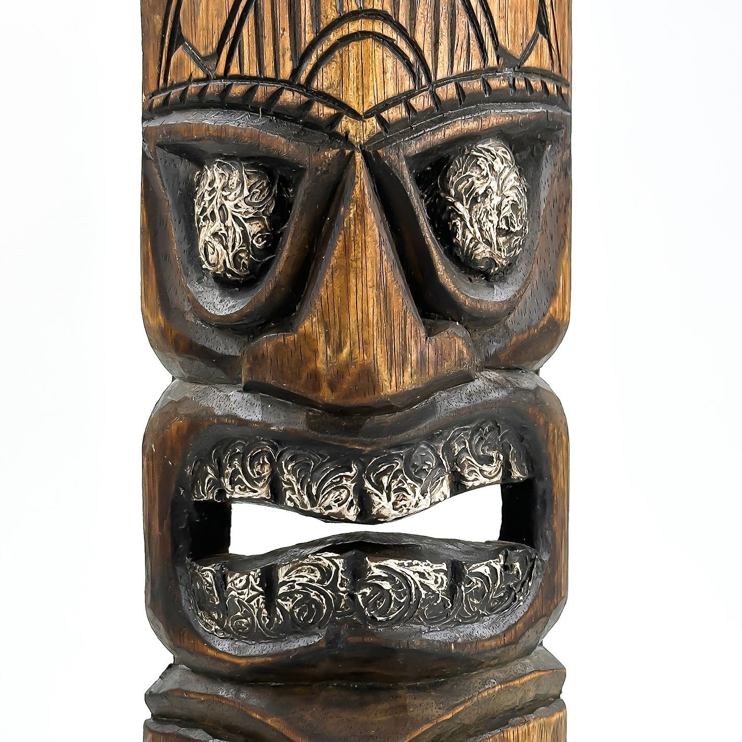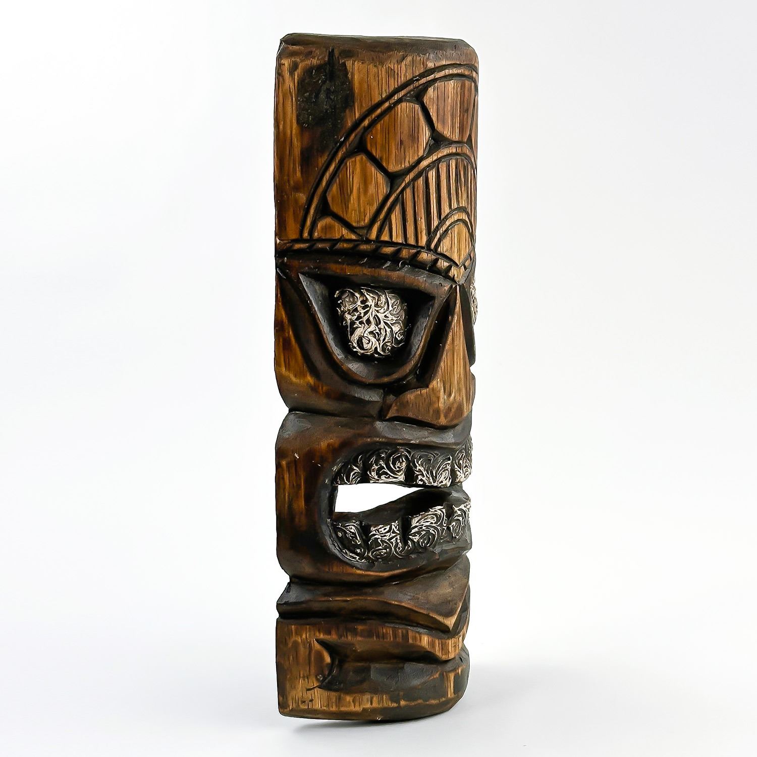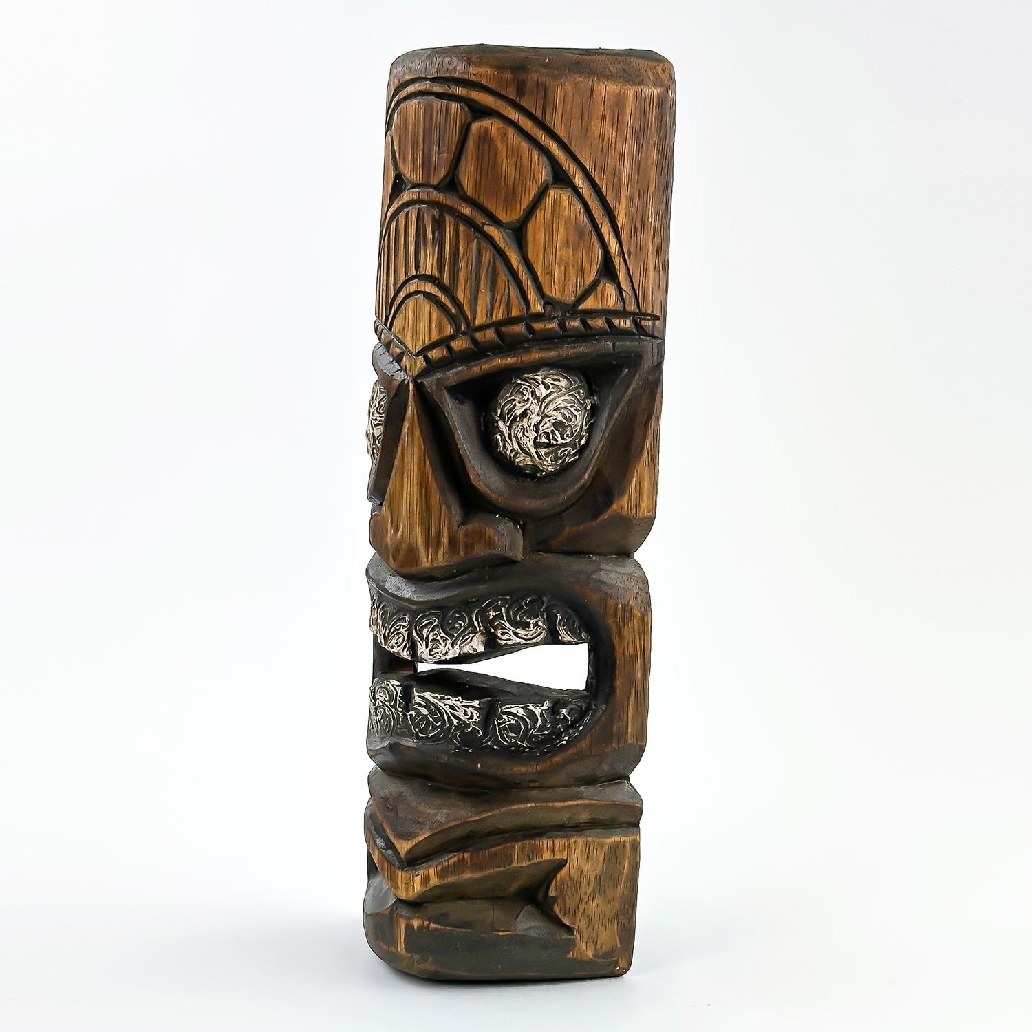 #8078 - TIKI TOTEM WOOD CARVING SCULPTURE. MEASURES: 12” (30.5 CM) TALL BY 4.5: (11.5 CM) WIDE AND 2.25” (5.5 CM) DEEP