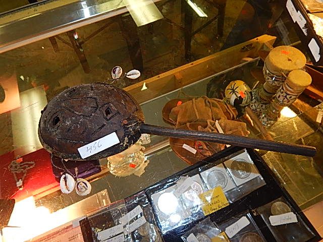 HAND CRAFTED WOOD MASK WITH SHELL DECOR RATTLE