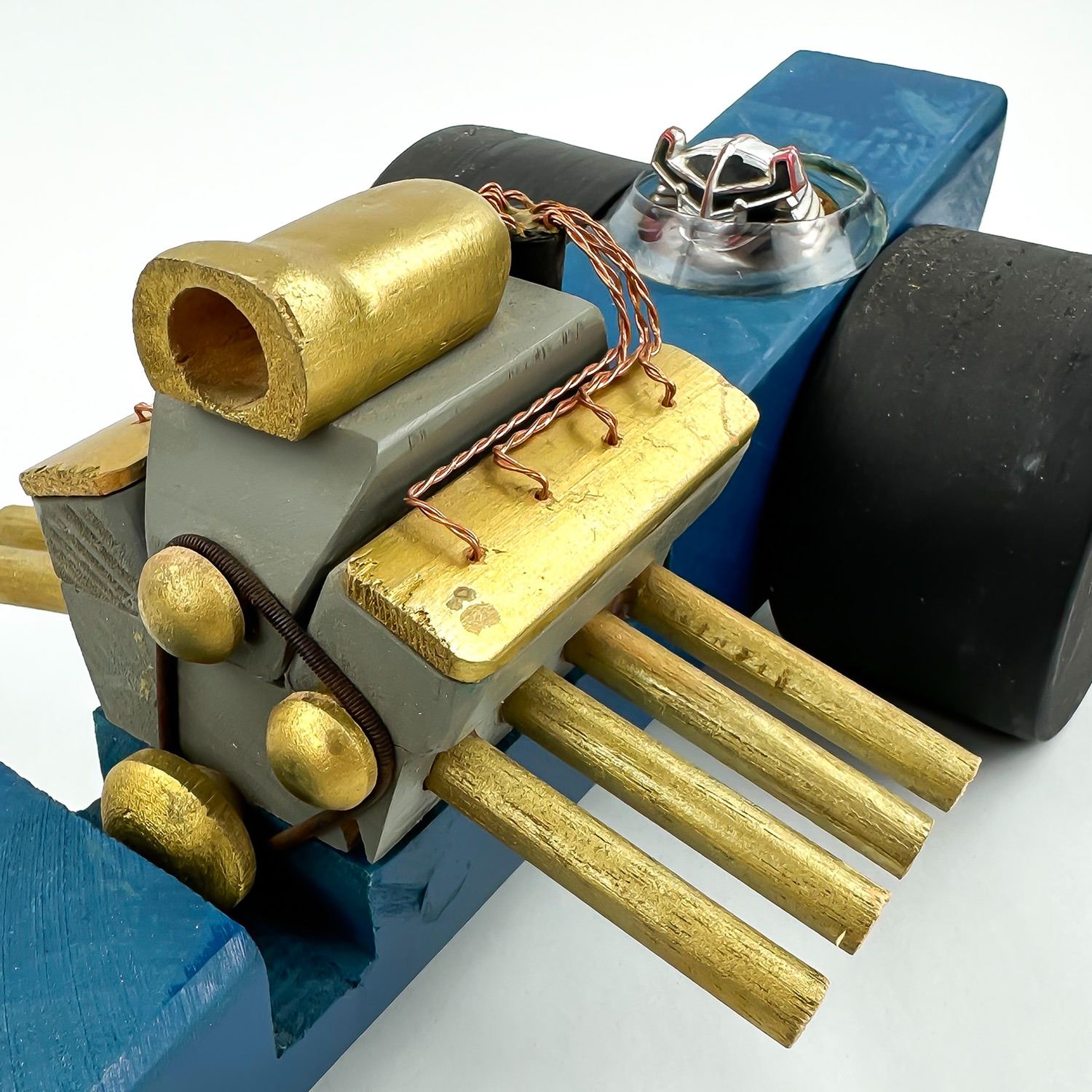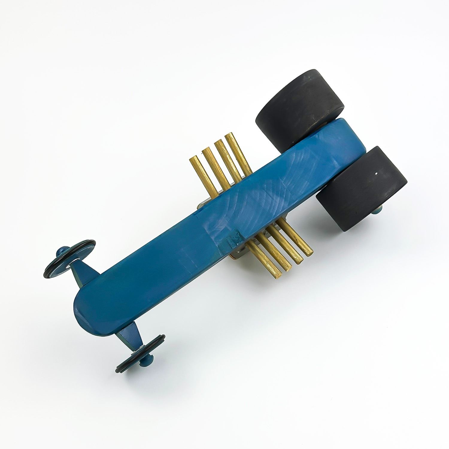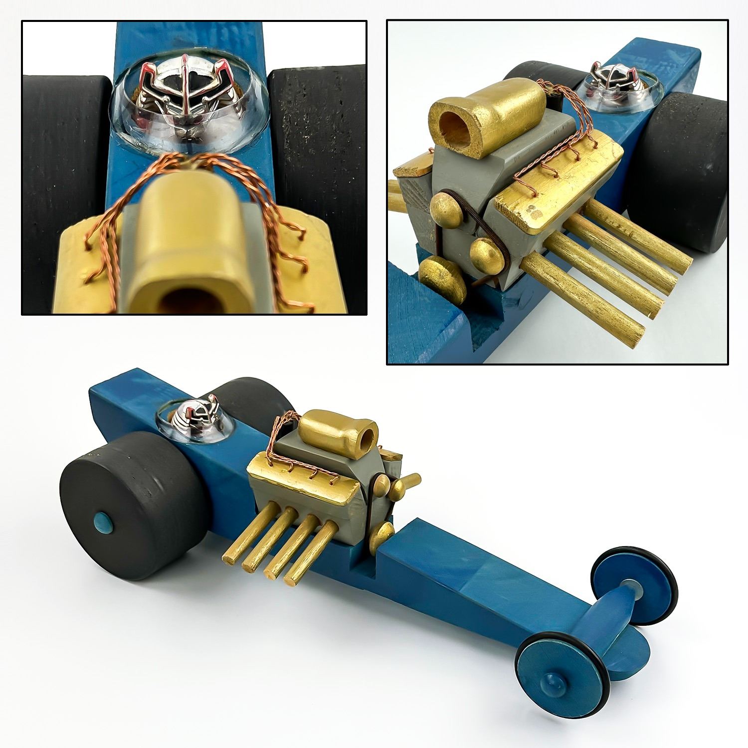 #8005 - VINTAGE HAND CRAFTED CARVED WOOD DRAG RACER DRAGSTER CAR - PUSH THE TOY AND THE WHEELS ROLL. MEASURES” 13.5” (34 CM) LONG BY 5.25” (13.5 CM) WIDE AT BACK WHEELS