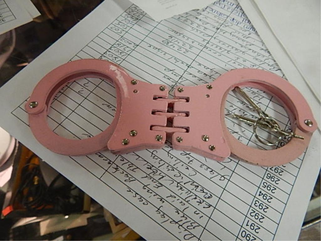 HAND CUFFS WITH BAR - 2 KEYS - PINK - NOT TOYS - MUST BE 19+