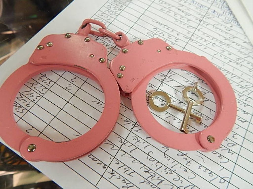 HAND CUFFS WITH CHAIN - 2 KEYS - PINK - NOT TOYS - MUST BE 19+