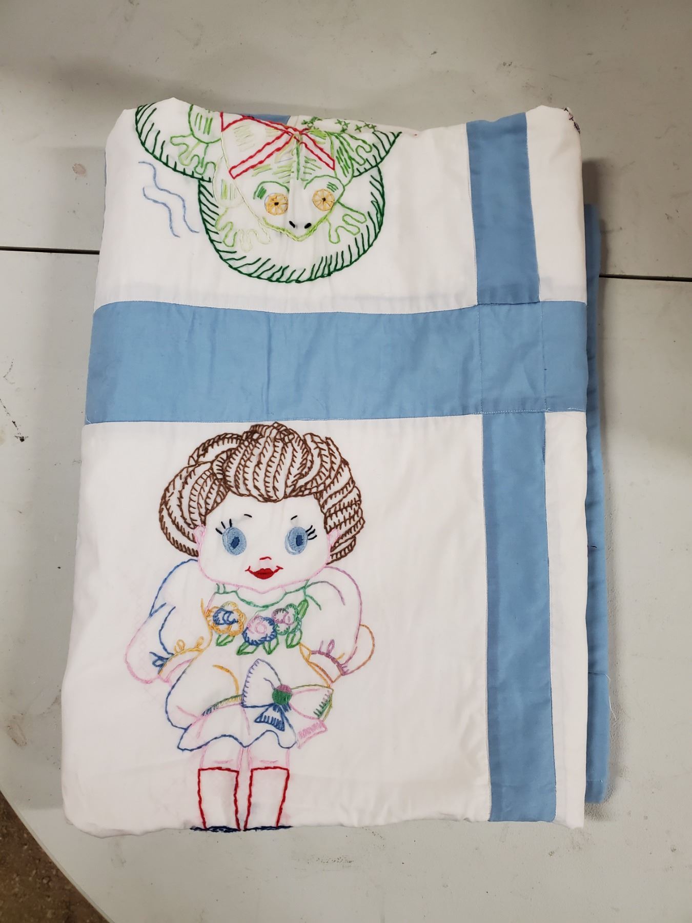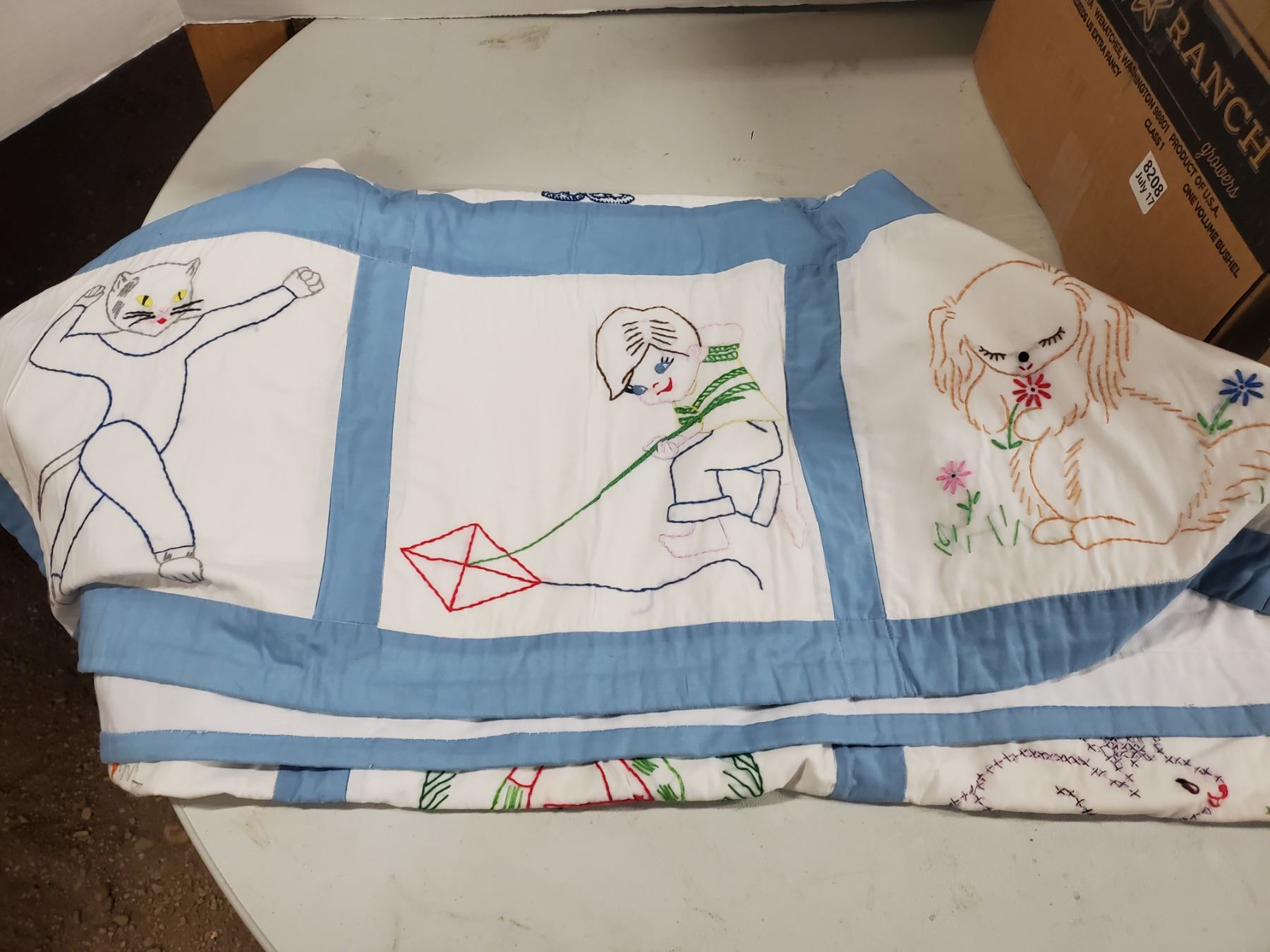 HAND EMBROIDERED CHIDLRENS QUILT TWIN SIZE