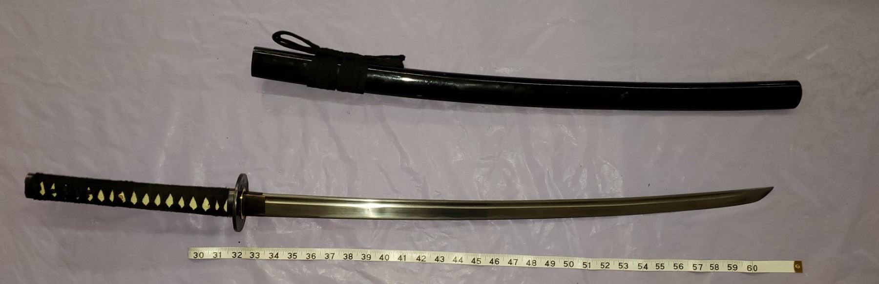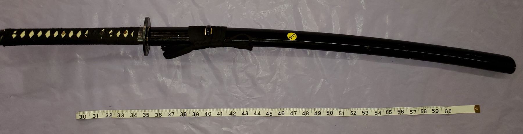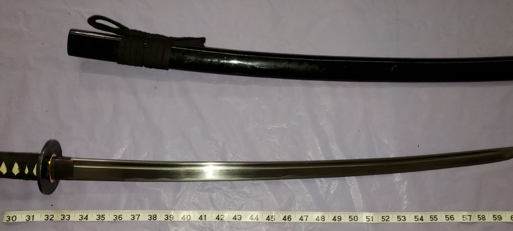 HAND POUNDED, FORGED, FOLDED RESULTING IN LAMINATED STEEL COMBO OF STRENGTH AND FLEXIBILITY. A STUNNER. BLADE 27" BLOOD LETTING GROOVE LENGTH OF BLADE- BLADES BACK THICKNESS AT HILT 1/4" MADE BY MASTER SWORDMAKER