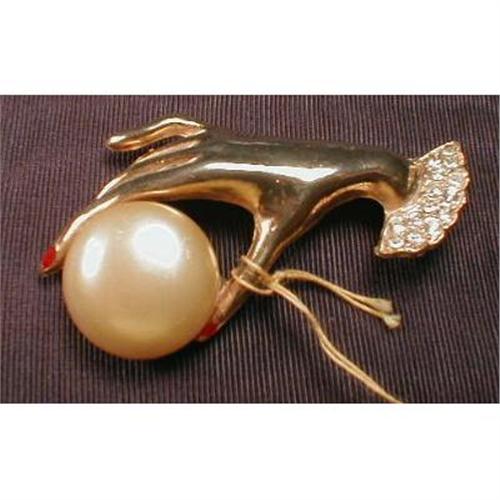 Fun vintage brooch in the shape of a hand holding a big mobe