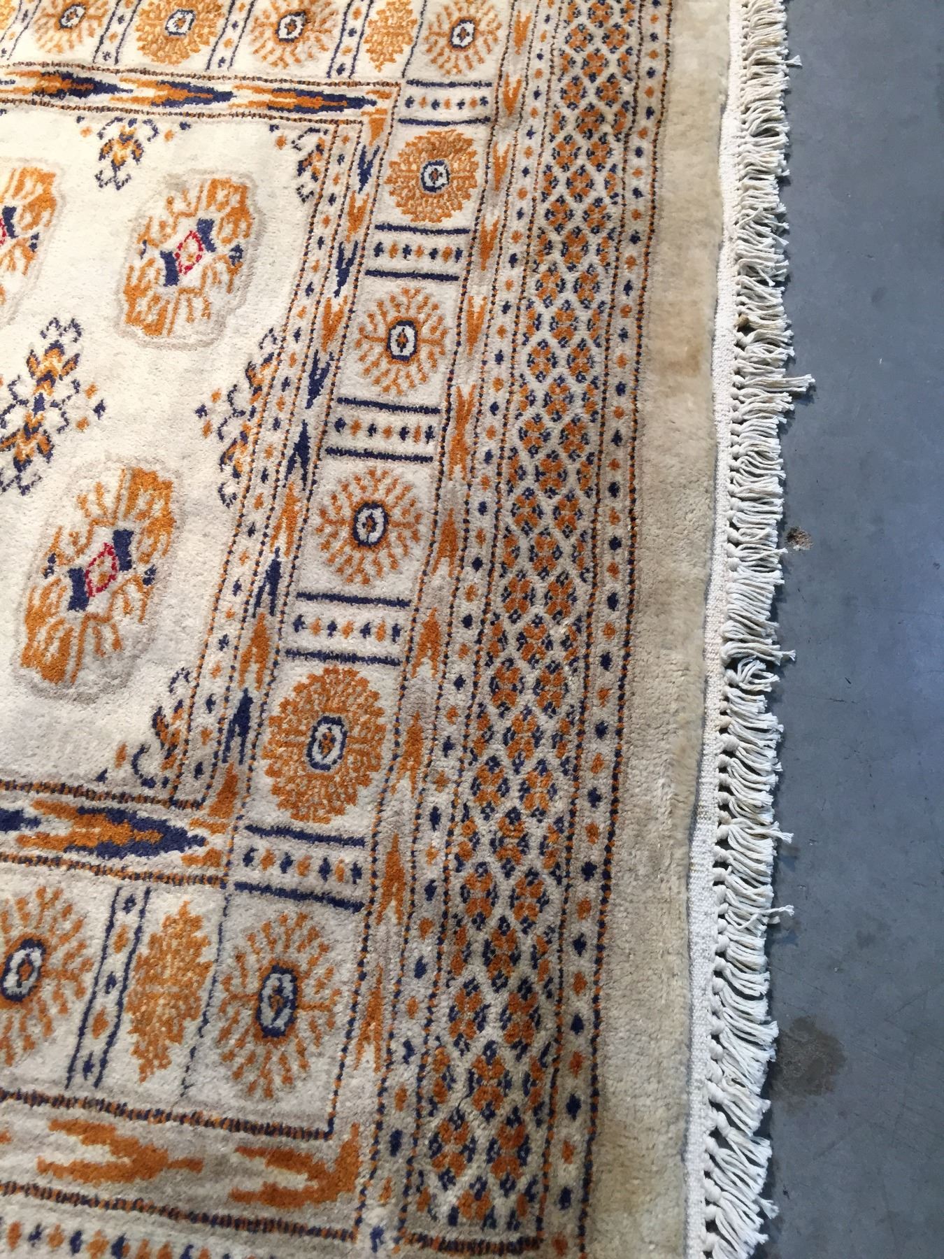 3'.3"x5' Hand knotted Bokhara rug ,in decorative Ivory ,and multi accent colors Vege dye Hand Knotted in Pakistan 100% Natural wool pile.