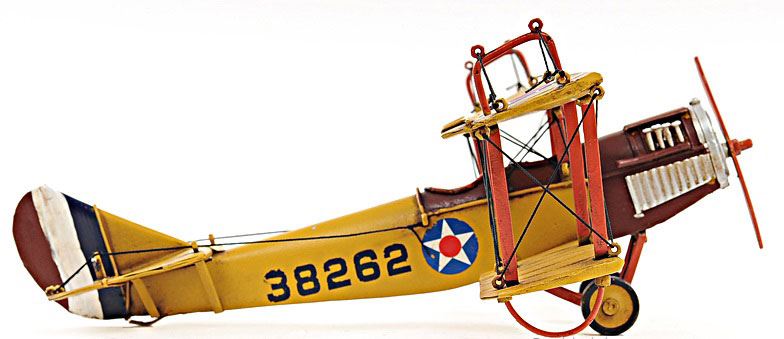HAND MADE 1918 YELLOW CURTIS JB-4 1:24TH SCALE MODEL RE **|**|** The Curtiss JN-4 "Jenny" was one of a series of "JN" biplanes built by the Curtiss Aeroplane Company of Hammondsport, New York. This fighter bi-plane was one of the most capable, faster and stronger than many of its contemporaries. This replica model of the Curtiss Jenny is handmade on a scale of 1:24. It features iron frame, wire accents, propeller and wheels. A must have for the collector and enthusiast!