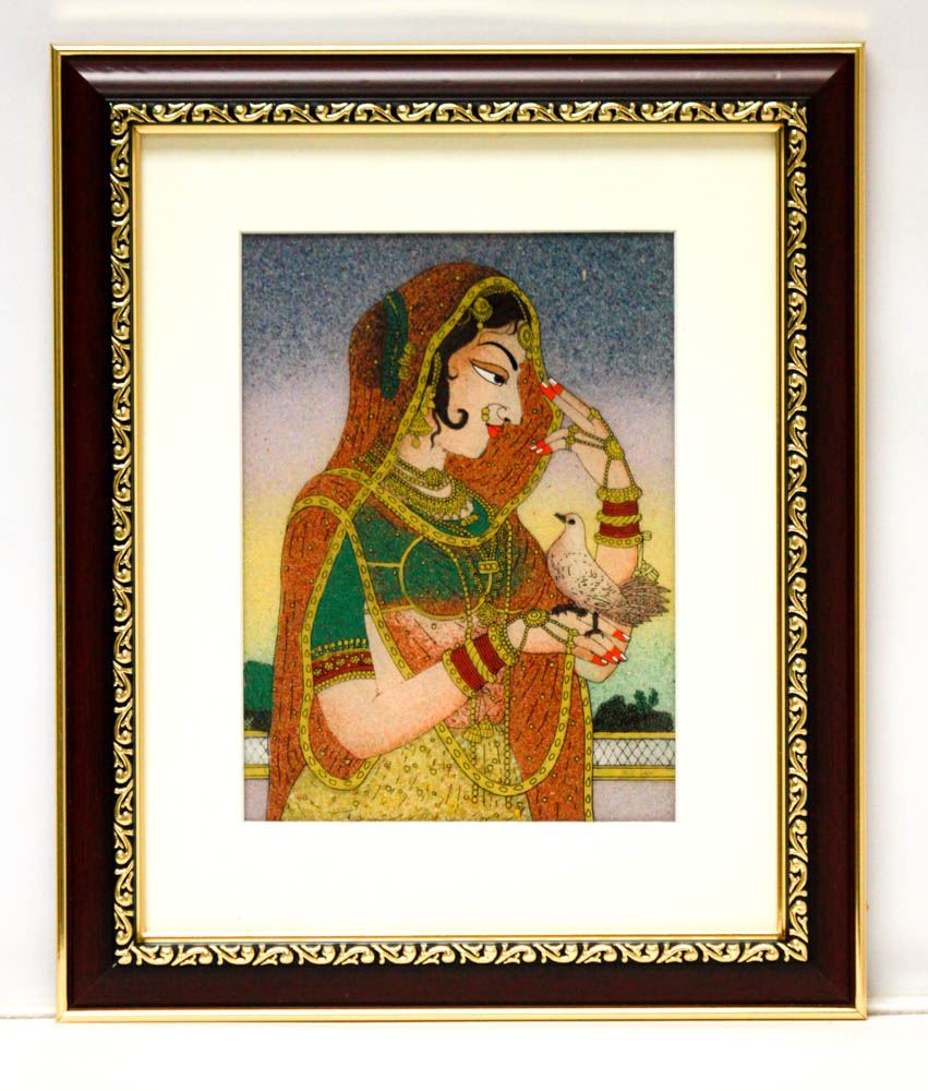 HAND MADE GEM STONE PANTING OF A INDIAN PRINCESS W/BIRD **|**|** HAND MADE GEM STONE PANTING OF A INDIAN PRINCES W/BIRD THE STONES USED TO MAKE THIS PANITHING ARE (AMETHYST, CALCEDONY, CORNELIAN AGATE, GARNET, GREEN AVENTURINE, MELAKITE, RED JASPER, PERIDOT, TURQUOISE, YELLOW AGATE) READY TO HANG
