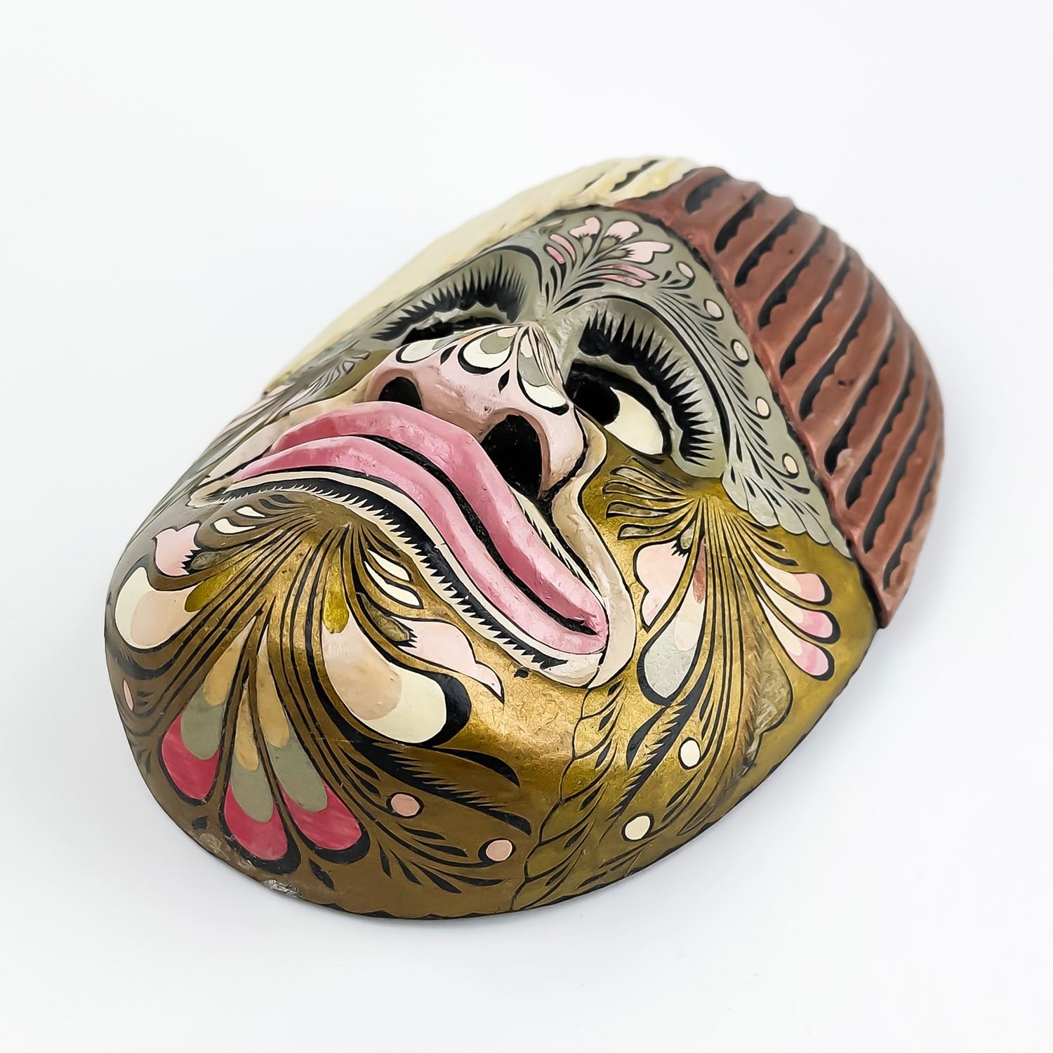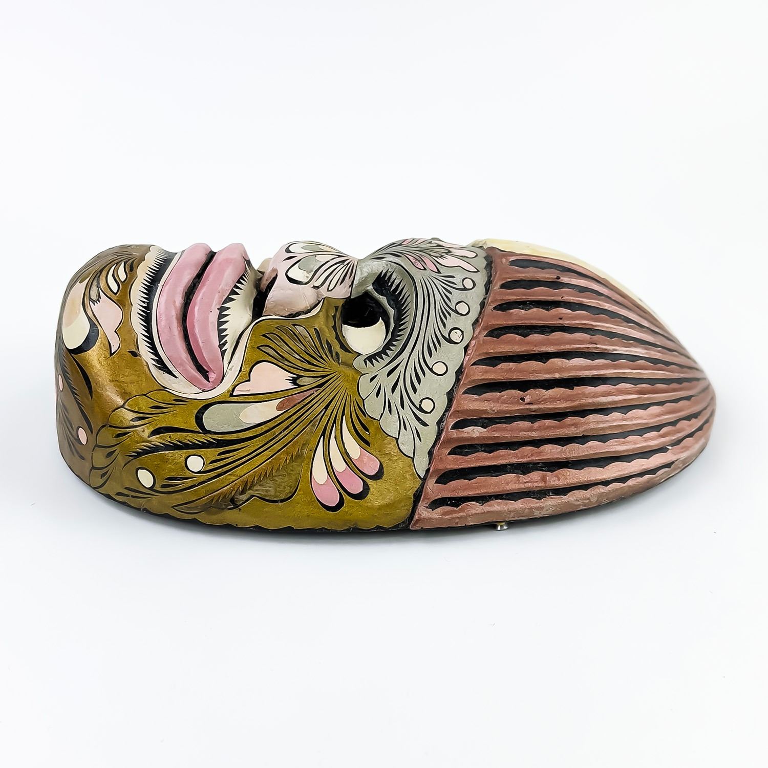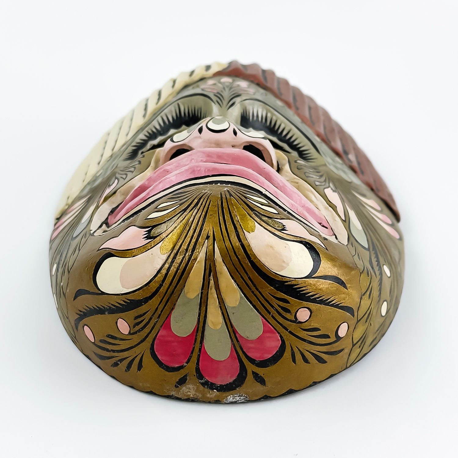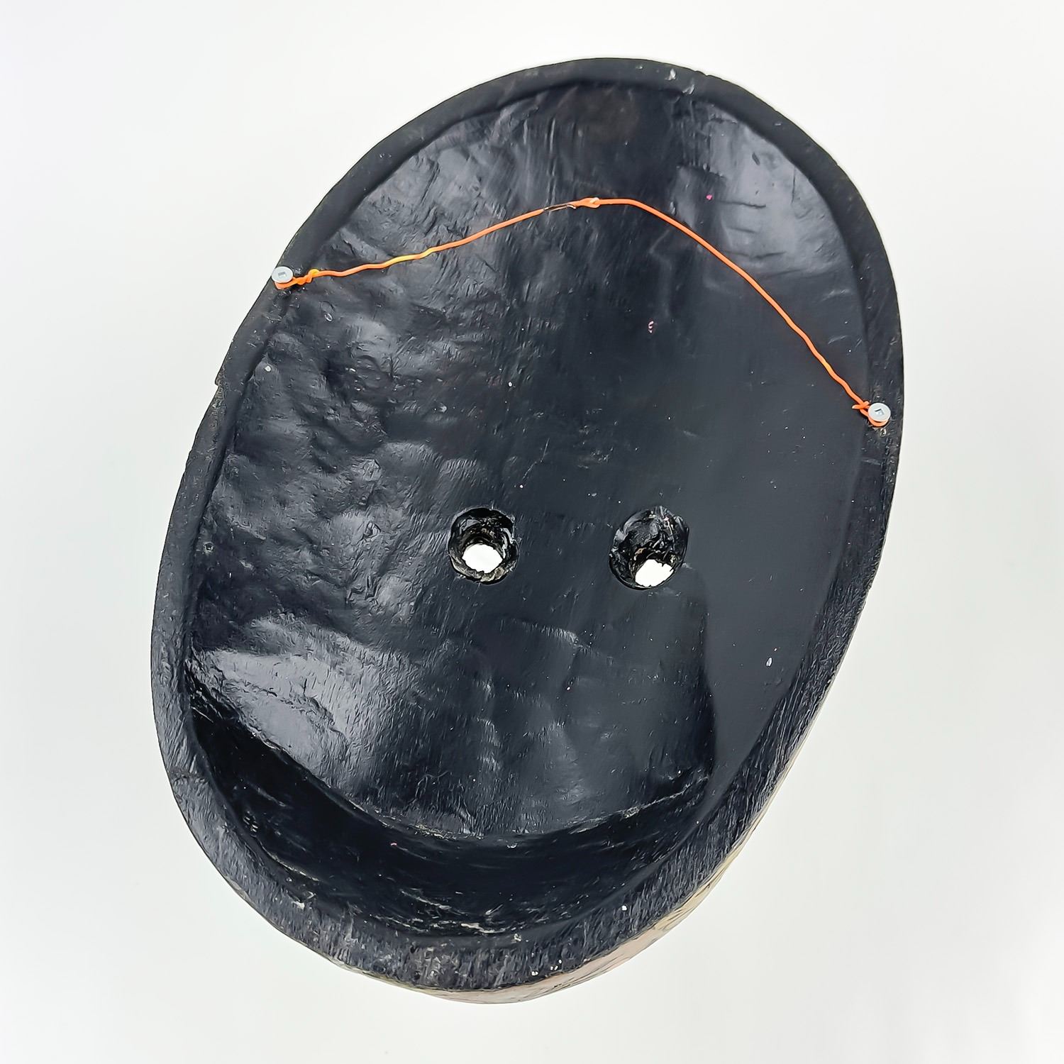 #8141 - VINTAGE TRIBAL MASK WOOD CARVING SCULPTURE - HAND CARVED AND PAINTED. COLLECTIBLE HOME DECOR WALL SCULPTURE ART. NO CRACKS, CHIPS OR REPAIRS. MEASURES 10” (25.5 CM) TALL BY 6.75” (17 CM) WIDE AND 3.125” (8 CM) DEEP.