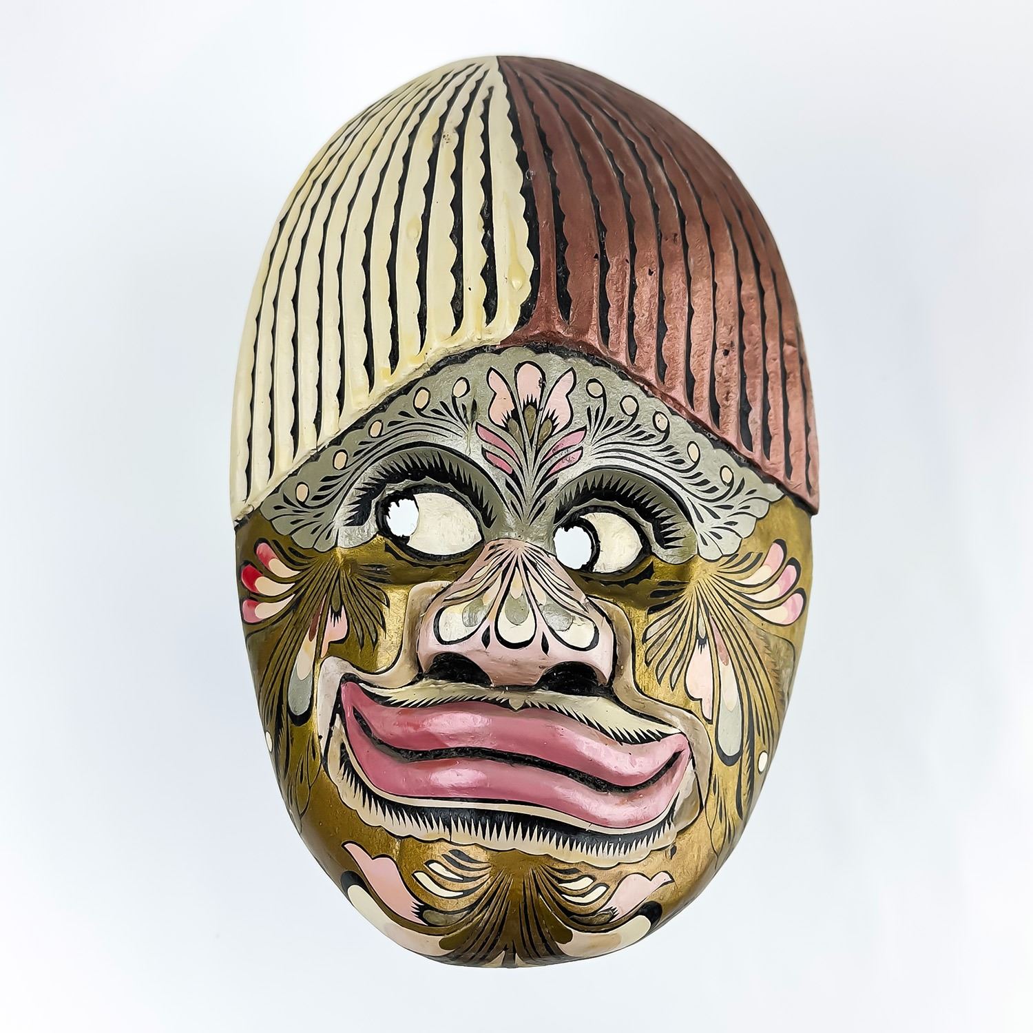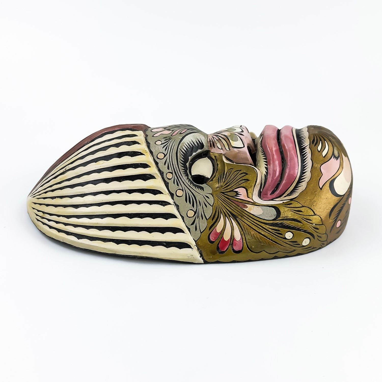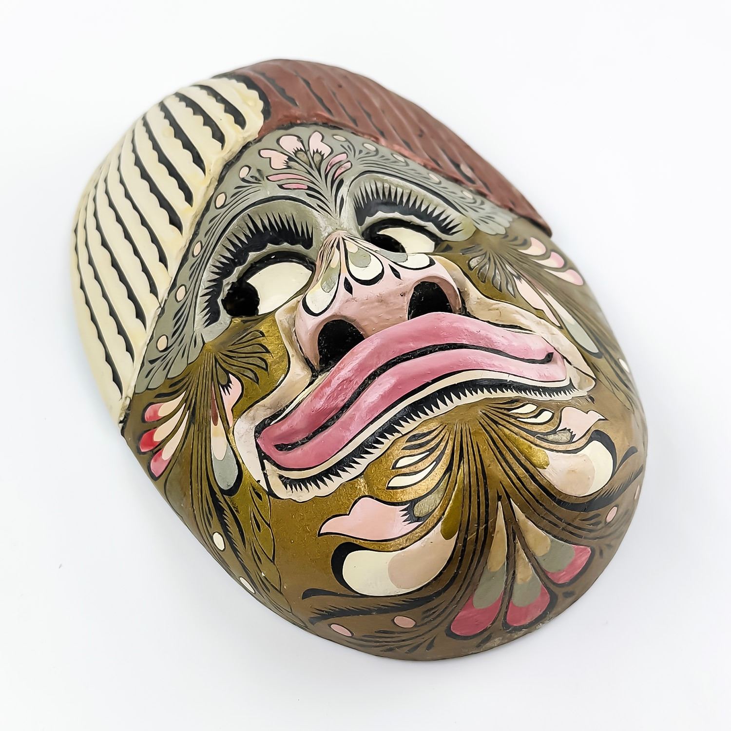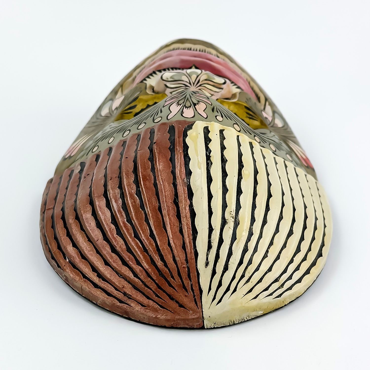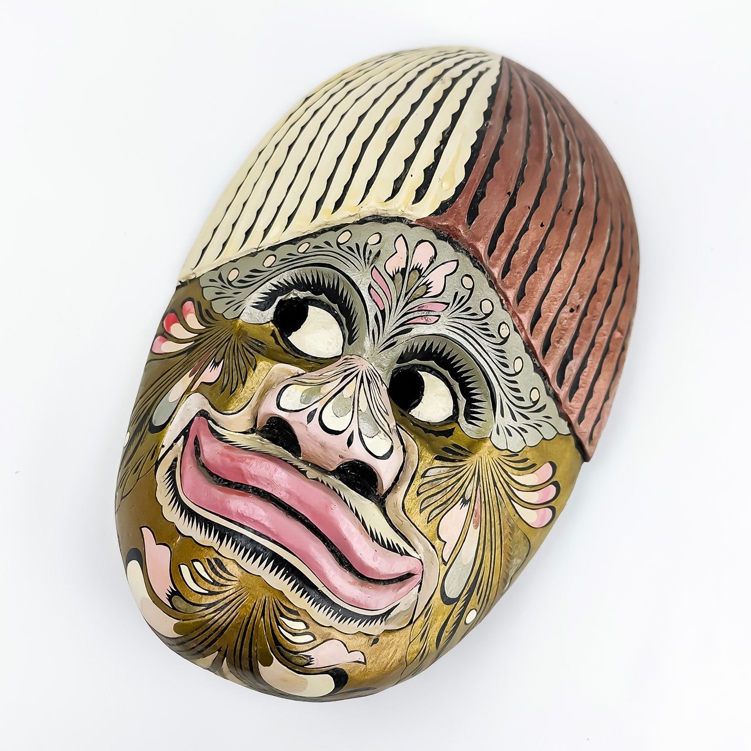 #8141 - VINTAGE TRIBAL MASK WOOD CARVING SCULPTURE - HAND CARVED AND PAINTED. COLLECTIBLE HOME DECOR WALL SCULPTURE ART. NO CRACKS, CHIPS OR REPAIRS. MEASURES 10” (25.5 CM) TALL BY 6.75” (17 CM) WIDE AND 3.125” (8 CM) DEEP.