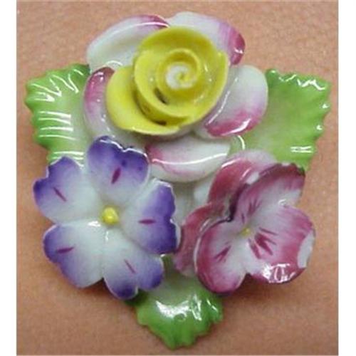 BEAUTIFUL HAND MADE PORCELAIN FLORAL BROOCH, EXCELLENT CONDITION BUT FOR FEW TINY NICKS ON THE FLOWERS, WHICH IS HARD TO FIND, MEASURES 1 1/4" X 1 1/4", US BUYER TO PAY 7.00 FOR SHIPPING PLUS INSURANCE.THANKS.