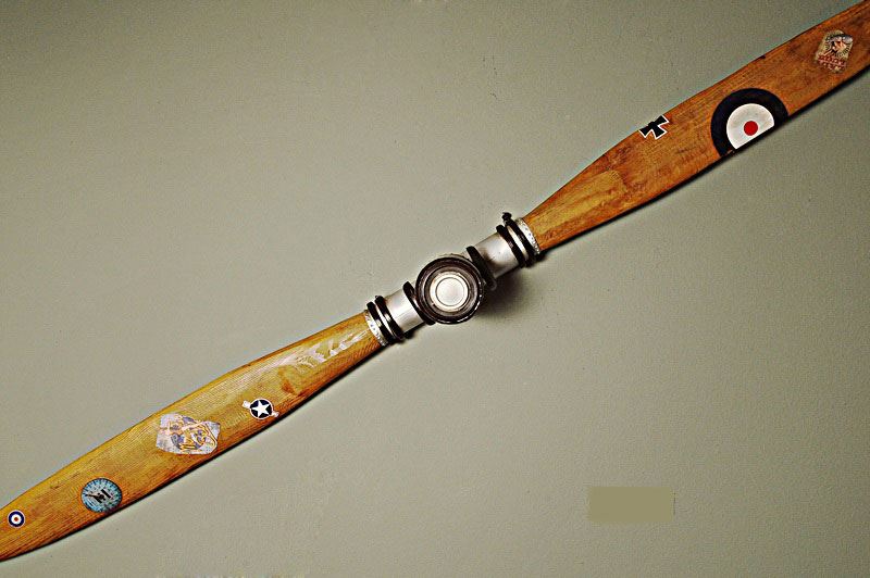 HAND MADE VINTAGE REPLICA AIRPLANE PROPELLER **|**|** Nothing captures the spirit and nostalgia of the World War I era like this timeless antique propeller. At approximately 79 inches long, this decor piece is perfect for an aviation expert or collector. This vintage propeller is an exact replica of an original propeller from the World War I era. It features solid wood with brass accents and unique designs. A must have for the collector and enthusiast!