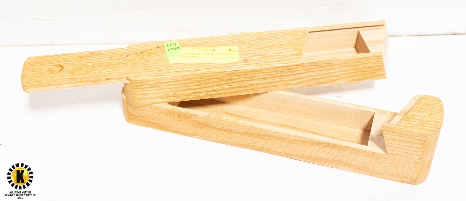 HAND MADE VINTAGE WOODEN PENCIL BOX.