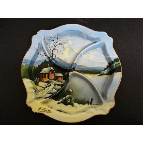 LOVELY HAND PAINTED SECTIONAL DISH, SIGNED BY THE ARTIST, please see lower left edge - on the back signed elite - hand painted - Excellent condition, no chips or cracks, Measures about 8 x 8 inch and 3/4 high.US Buyer to pay 9.00 for shipping plus insurance.THANKS.