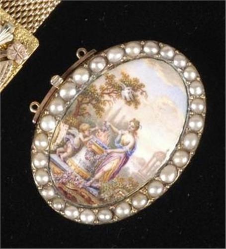 HAND PAINTED BRACELET CLASP, with classical scene, 38mm x27mm, circa 1840, PACKING AND SHIPPING BY FAIRFIELD AUCTION WITHIN CONTINENTAL USA (excluding insurance) $20- we will discount for combined shipping on multiple lots,
