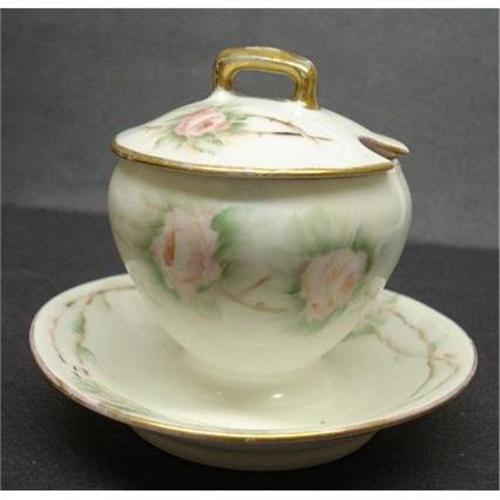 </font></strong>GORGEOUS COVERED CONDIMENT JAR OR DISH, HAND PAINTED DEPICTING EXQUISITE PINK ROSES, ARTIST INITIALS ARE M.E.L., MADE IN BAVARIA EARLY 1900's, as per images, Excellent condition but for gold gilt on the handle is a bit thin, Measures about 3 1/2" high, US Buyer to pay 7.00 for shipping plus insurance.THANKS</font>