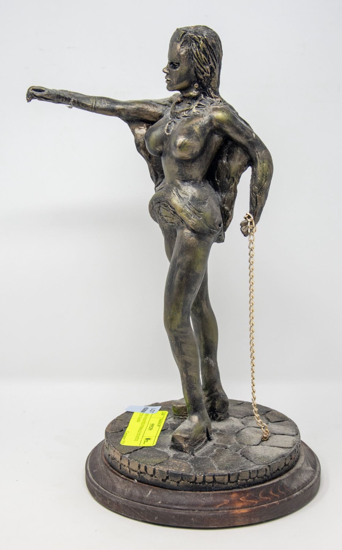 HAND PAINTED FEMALE STATUE WITH CHAIN