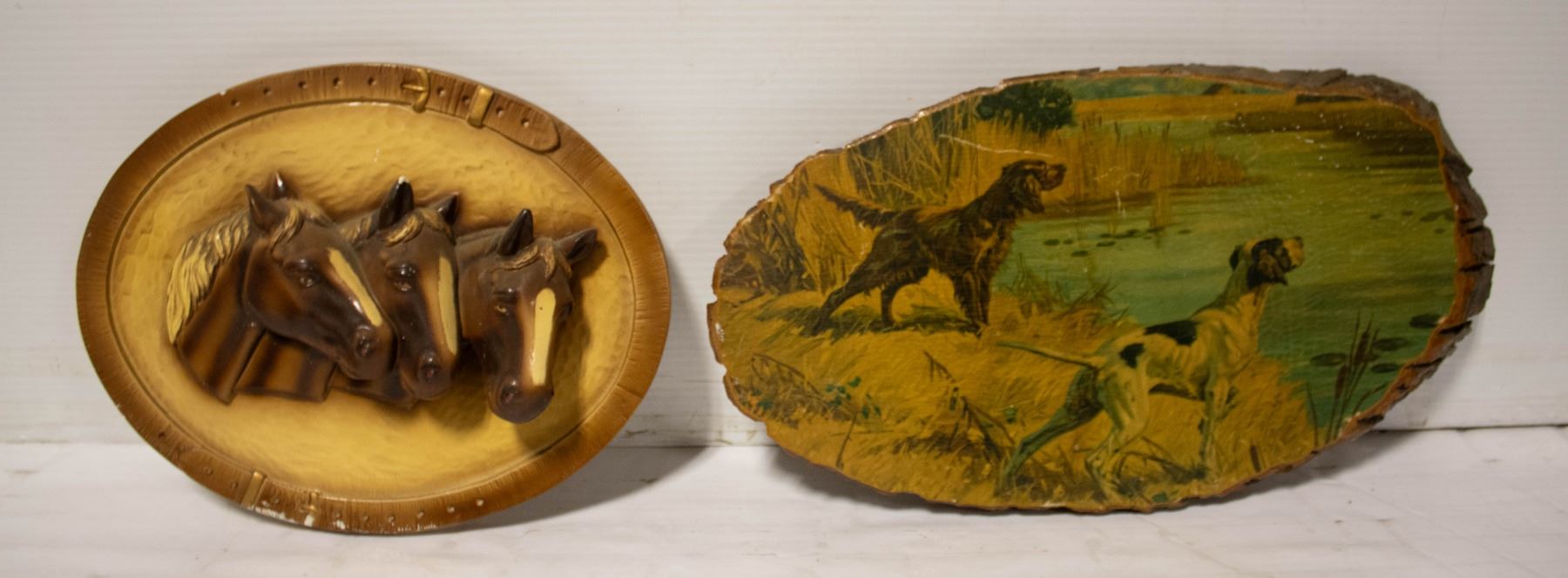 HAND PAINTED HORSES & DOGS ON WOOD - ESTATE