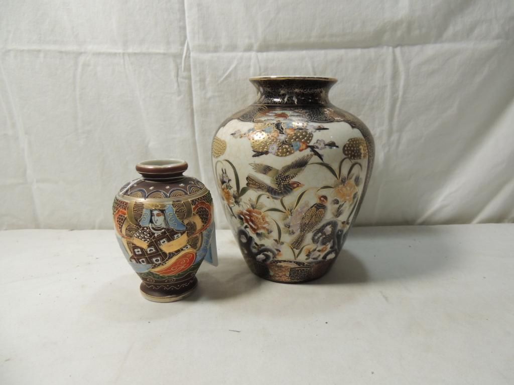HAND PAINTED JAPANESE VASES. SMALL AND LARGER. AMAZING DETAILS. DECORATIVE AS SHOWN. SEE PHOTO FOR MORE DETIALS.