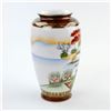 #8813 - JAPANESE PORCELAIN VASE - JAPANESE WOMAN ISLAND WATER FLORAL NATURE THEME. HAND PAINTED WITH GOLD TRIM. HOME OR OFFICE DECOR. MEASURES: 6.25” (16 CM) TALL BY 3.75” (9.5 CM) WIDEST DIAMETER