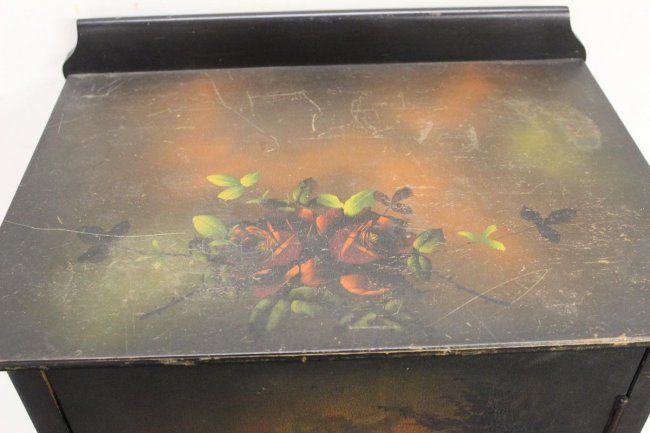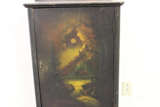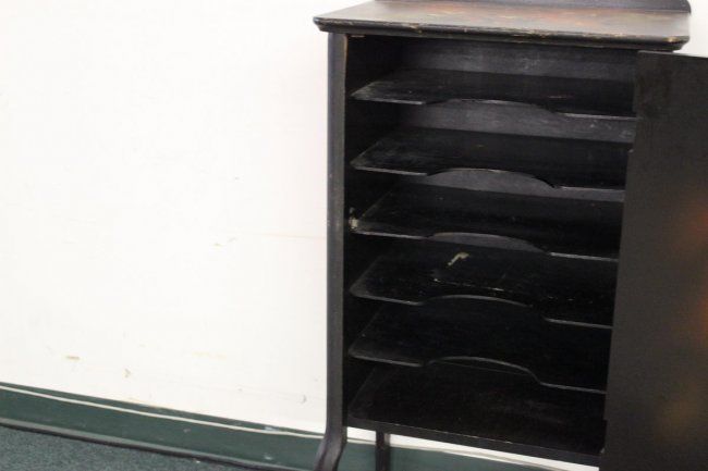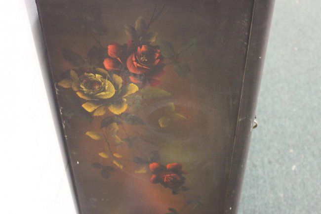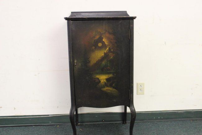 HAND-PAINTED MUSIC CABINET IN NICE CONDITION - MAHOGANY WOOD WITH FIVE SHELVES - 39 X 20