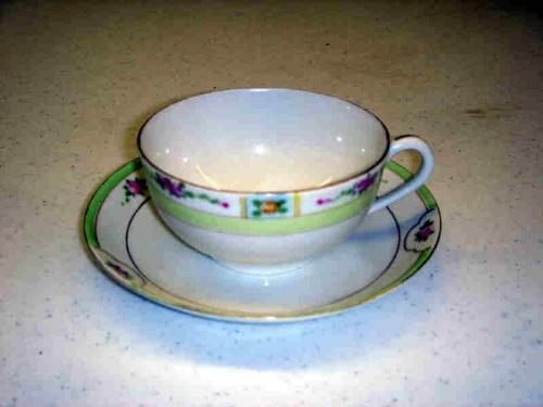 HAND PAINTED NIPPON CUP & SAUCER W/GREEN STRIPE &