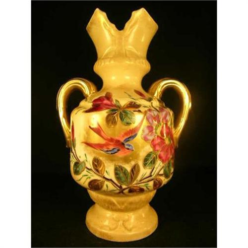 <tr><td>Title:HAND PAINTED VICTORIAN TALL VASE BIRDS </td></tr>