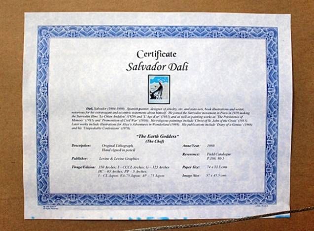 SALVADOR DALI "THE EARTH GODDESS" (THE CHEF) - HAND SIGNED & NUMBERED BY THE ARTIST - LIMITED EDITION LITHOGRAPH - PROFESSIONALLY FRAMED AND MATTED - PUBLISHED 1980 - REFERENCE, FIELD CATALOG P.186, 80-5 - IMAGE 17.5" X 26" - FRAMED 35" X 42" - COMES WITH CERTIFICATE OF AUTHENTICITY