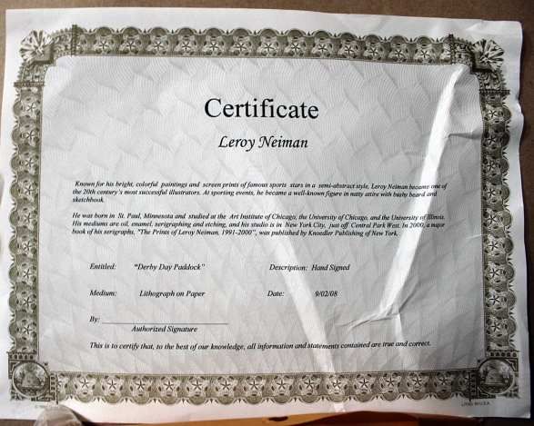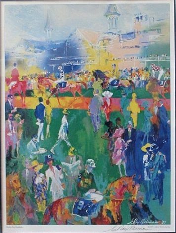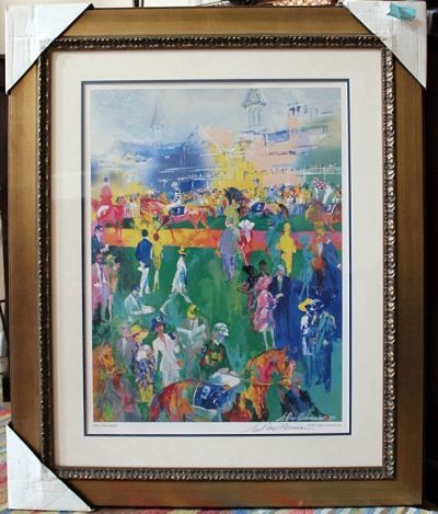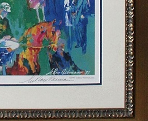 HAND SIGNED NEIMAN LITHOGRAPH - "DERBY DAY PADDOCK" - DOUBLE SIGNED (HAND SIGNED BY LEROY NEIMAN IN LOWER RIGHT CORNER AND PLATE SIGNED) - PROFESSIONALLY FRAMED & MATTED - FRAMED SIZE 41" X 33" - COMES WITH CERTIFICATE OF AUTHENTICITY