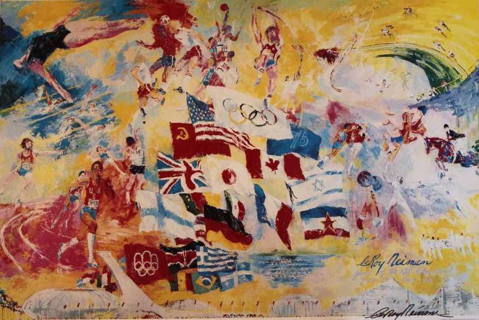 "OLYMPIC GAMES" BY LEROY NEIMAN - DOUBLE SIGNED (HAND SIGNED BY THE ARTIST AND PLATE SIGNED) ART PRINT - 20X30 (IMAGE) - PROFESSIONALLY FRAMED & MATTED