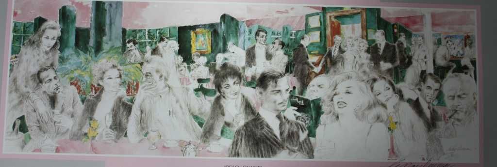 "POLO LOUNGE" BY LEROY NEIMAN - DOUBLE SIGNED (HAND SIGNED BY THE ARTIST AND PLATE SIGNED) ART PRINT - 11X33 (IMAGE) - PROFESSIONALLY FRAMED & MATTED