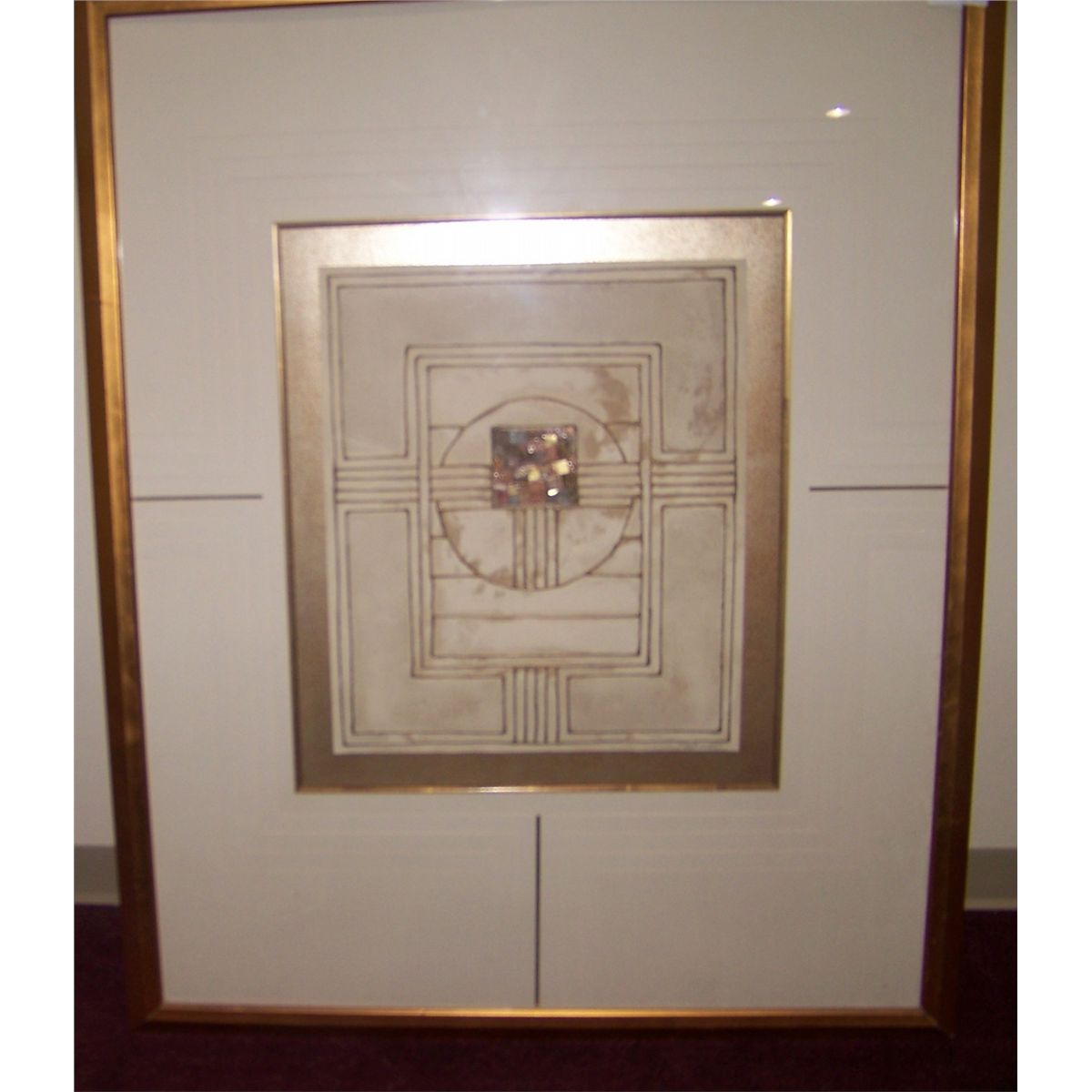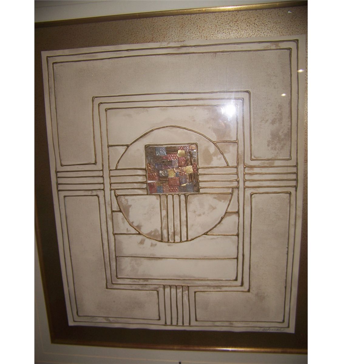 HAND SIGNED ORIGINAL ABSTRACT ARTWORK IN LARGE FRAME. 54T X 43W