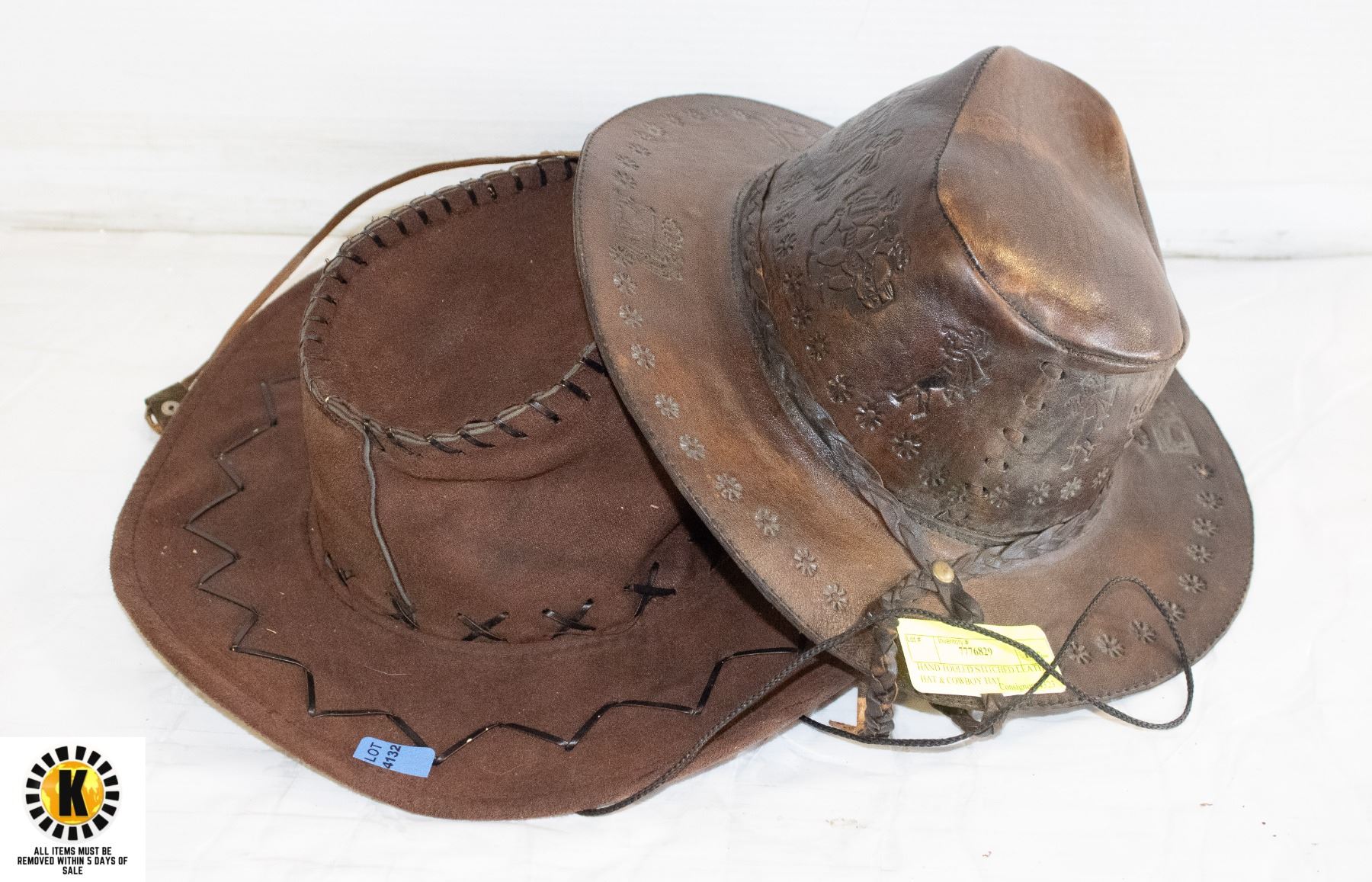 HAND TOOLED STITCHED LEATHER HAT & COWBOY HAT