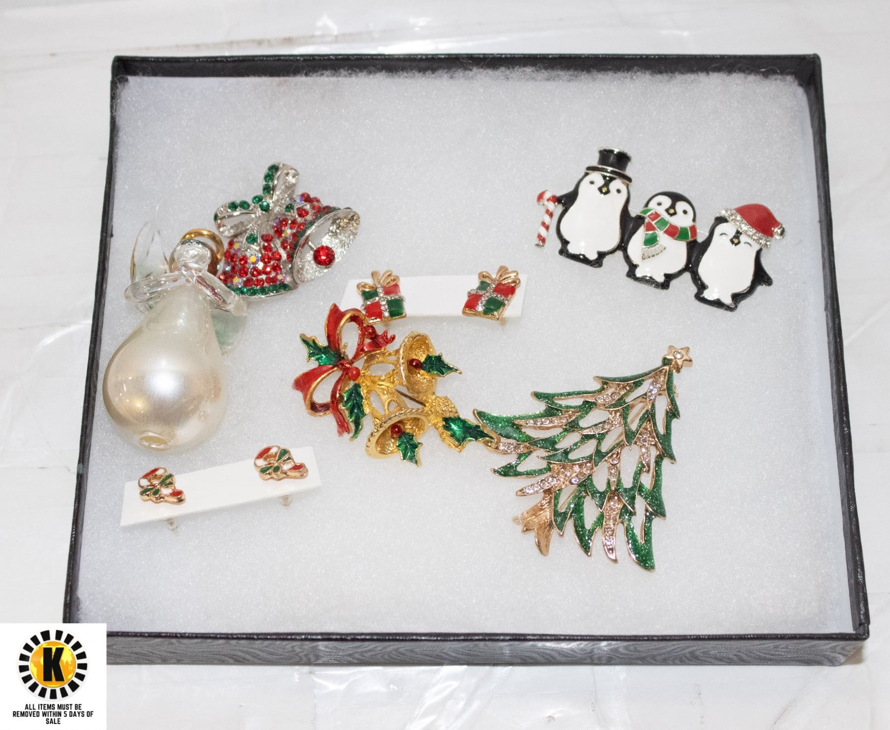 HANDBLOWN ANGEL ORNAMENT, 4 BROOCHES, 2 EARRINGS