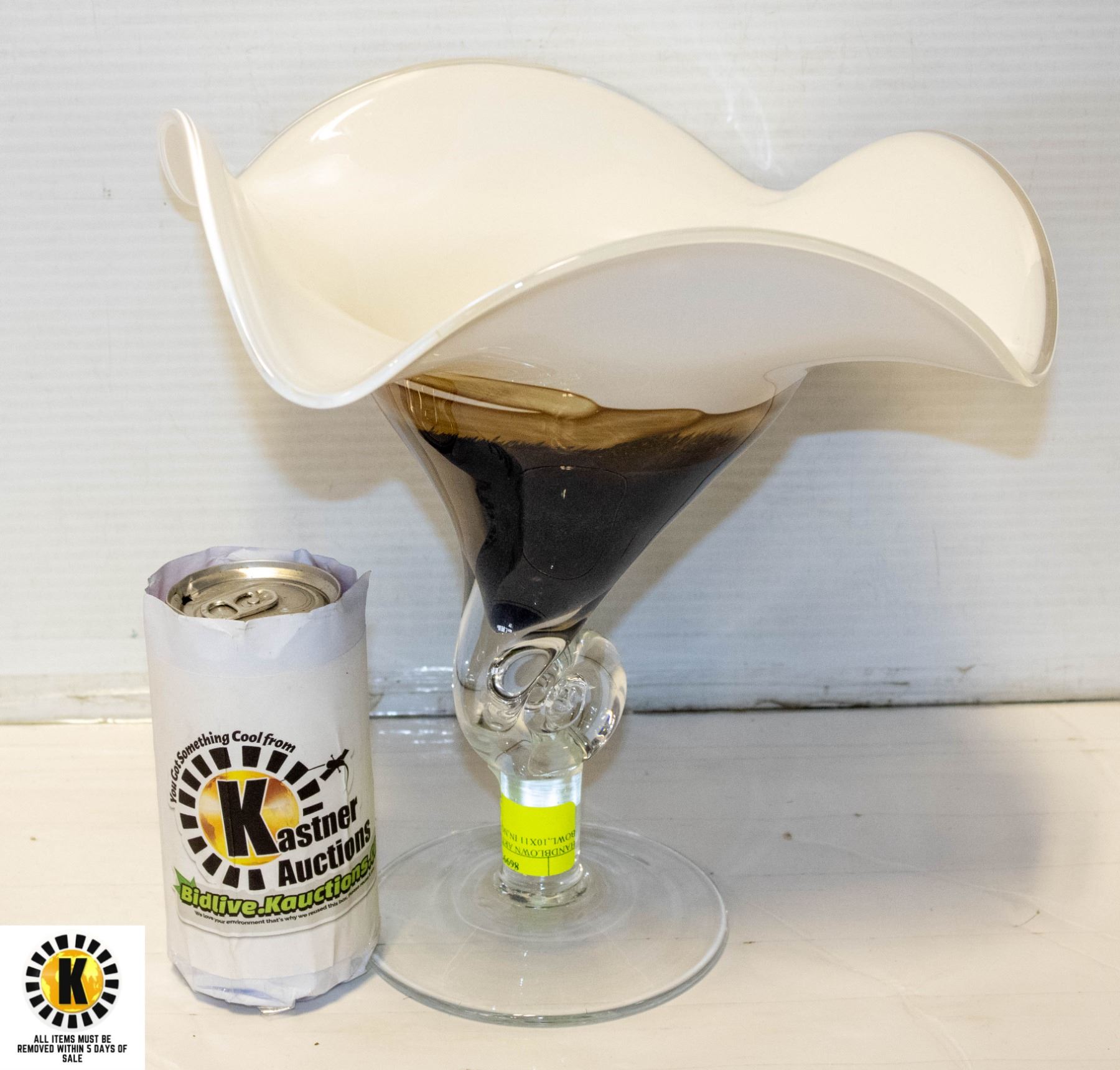 HANDBLOWN ART DECO BOWL,10X11 IN,NO CHIPS OR