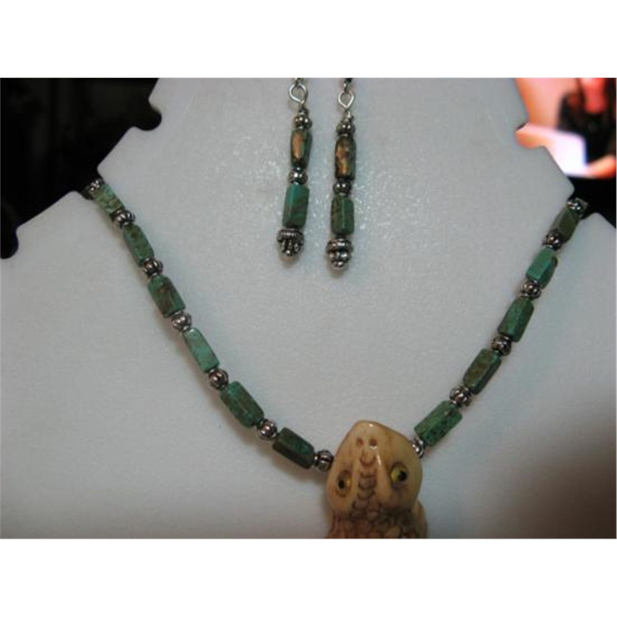 HANDCARVED, ONE-OF-A-KIND, BONE GECKO PENDANT AND TURQUOISE NECKLACE MWF1719