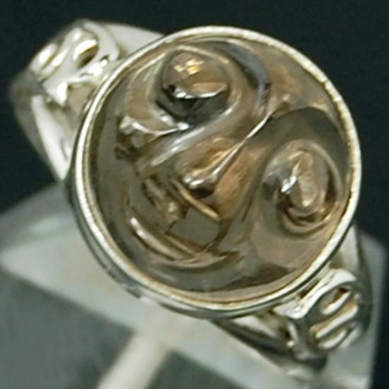 HANDCARVED SMOKY TOPAZ FACE SET IN STERLING SILVER RING, SIZ 7